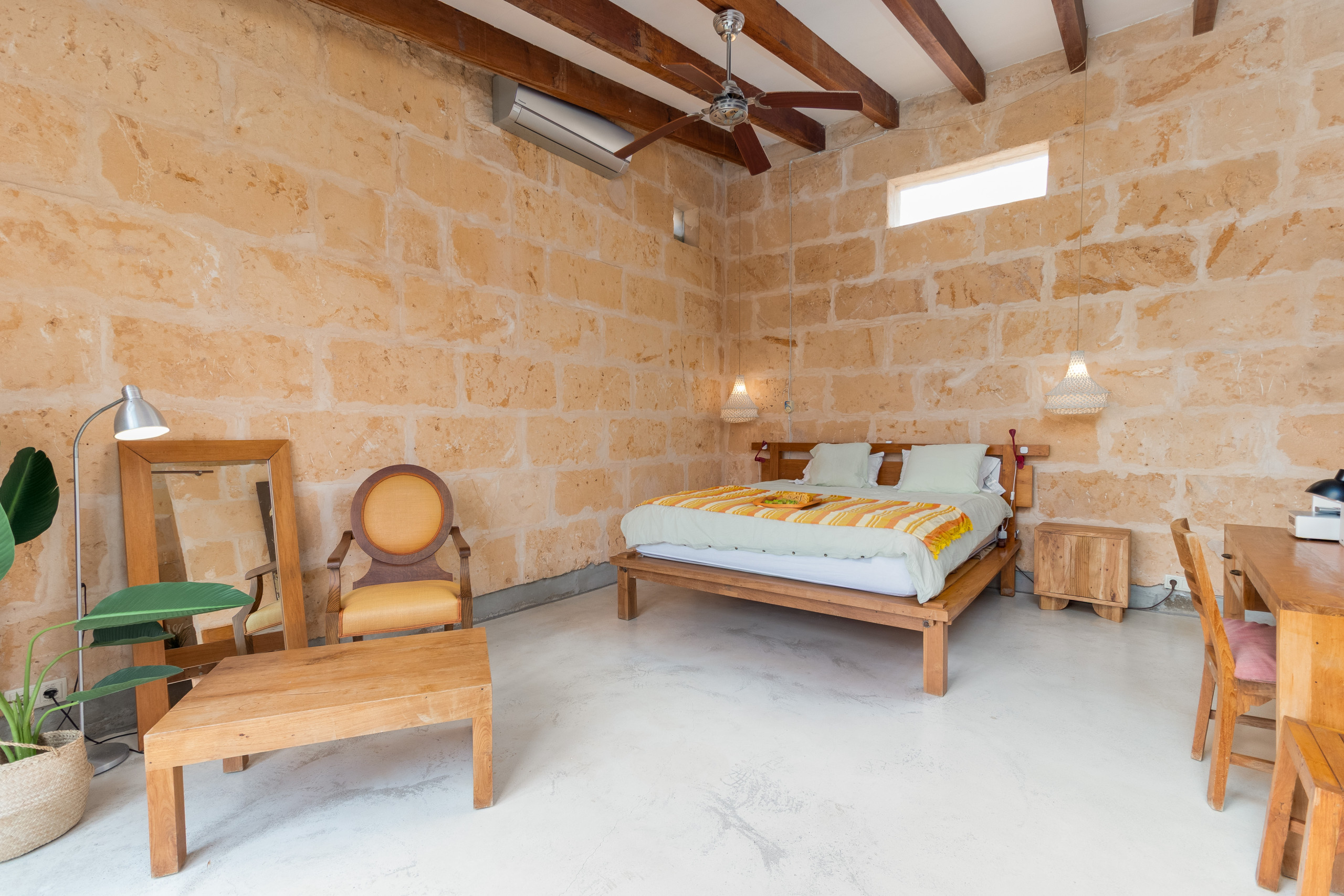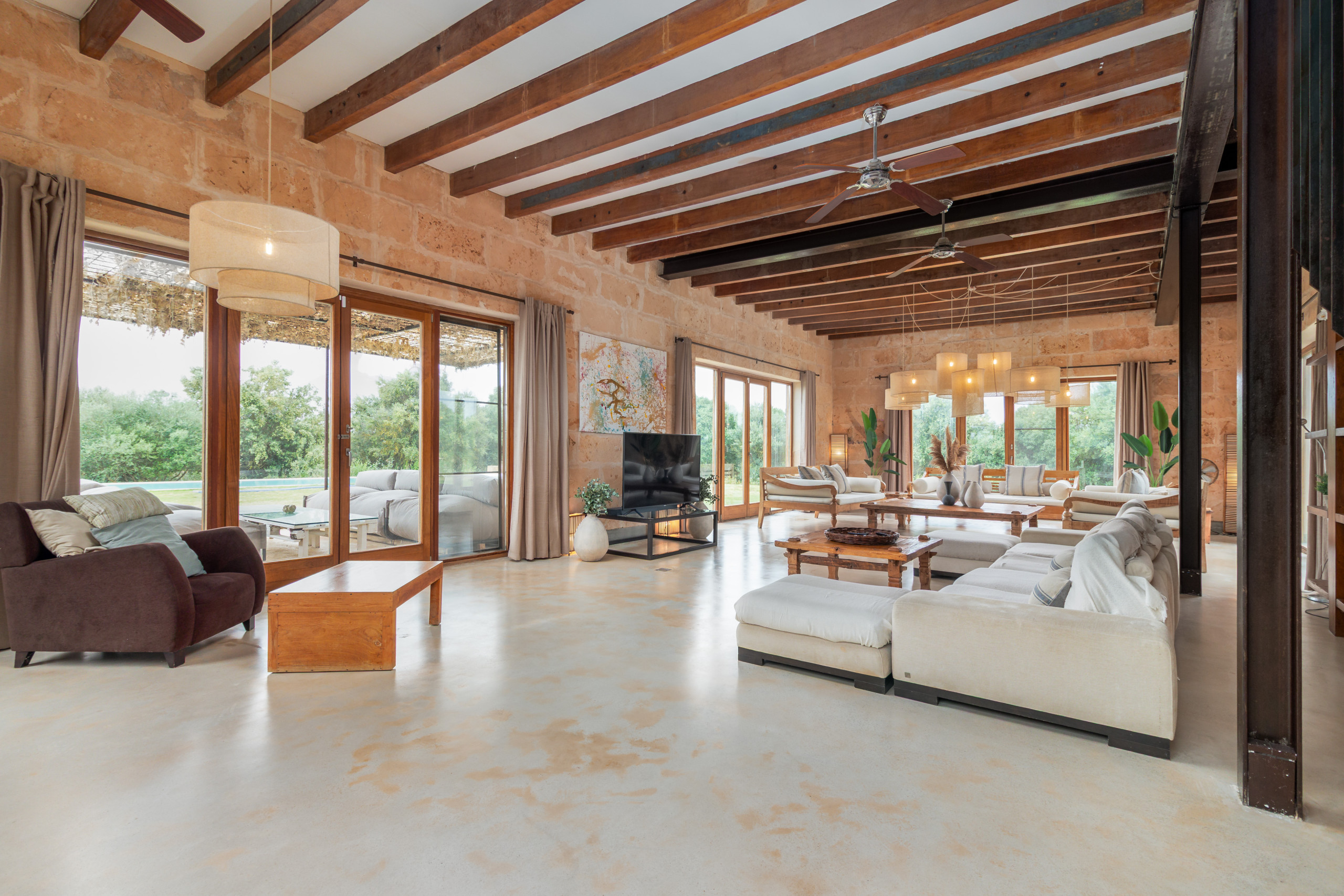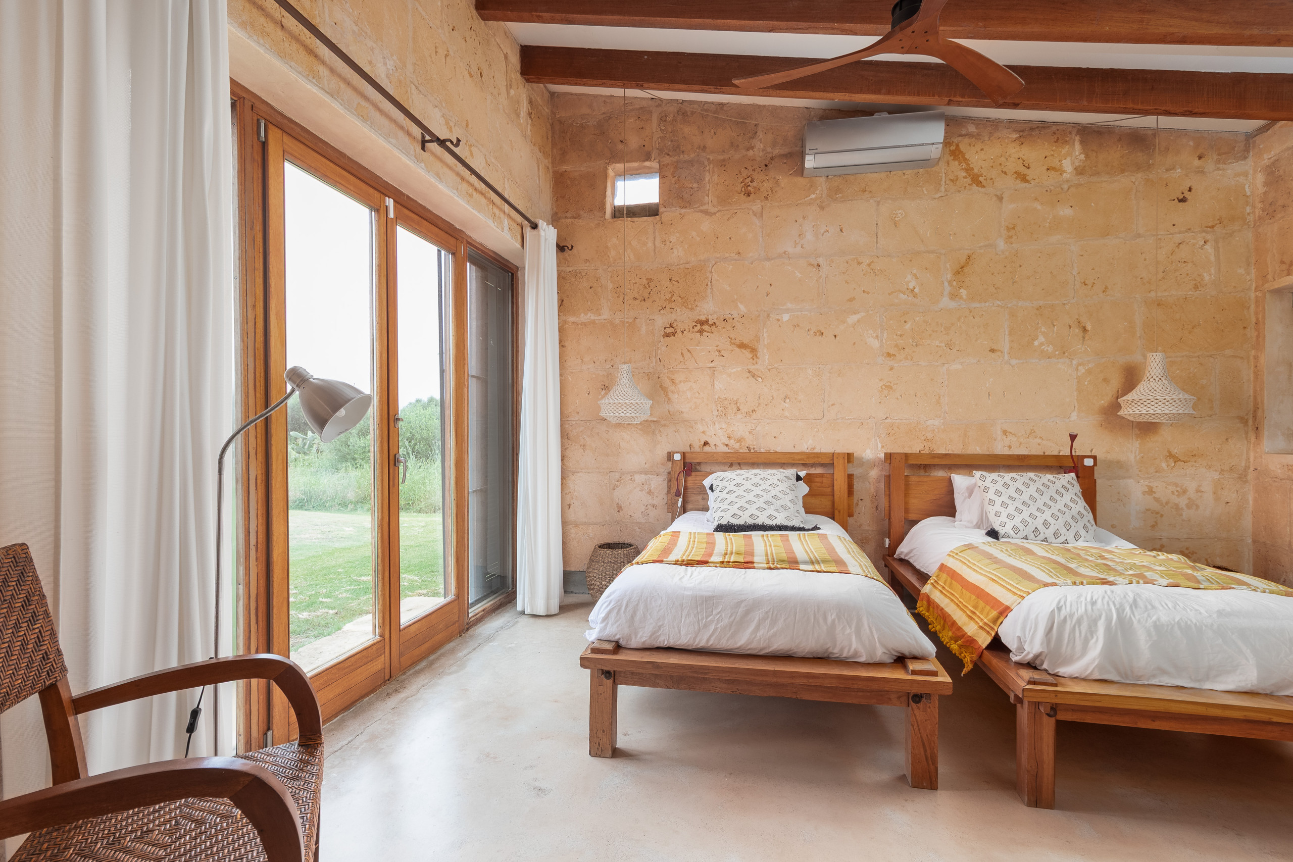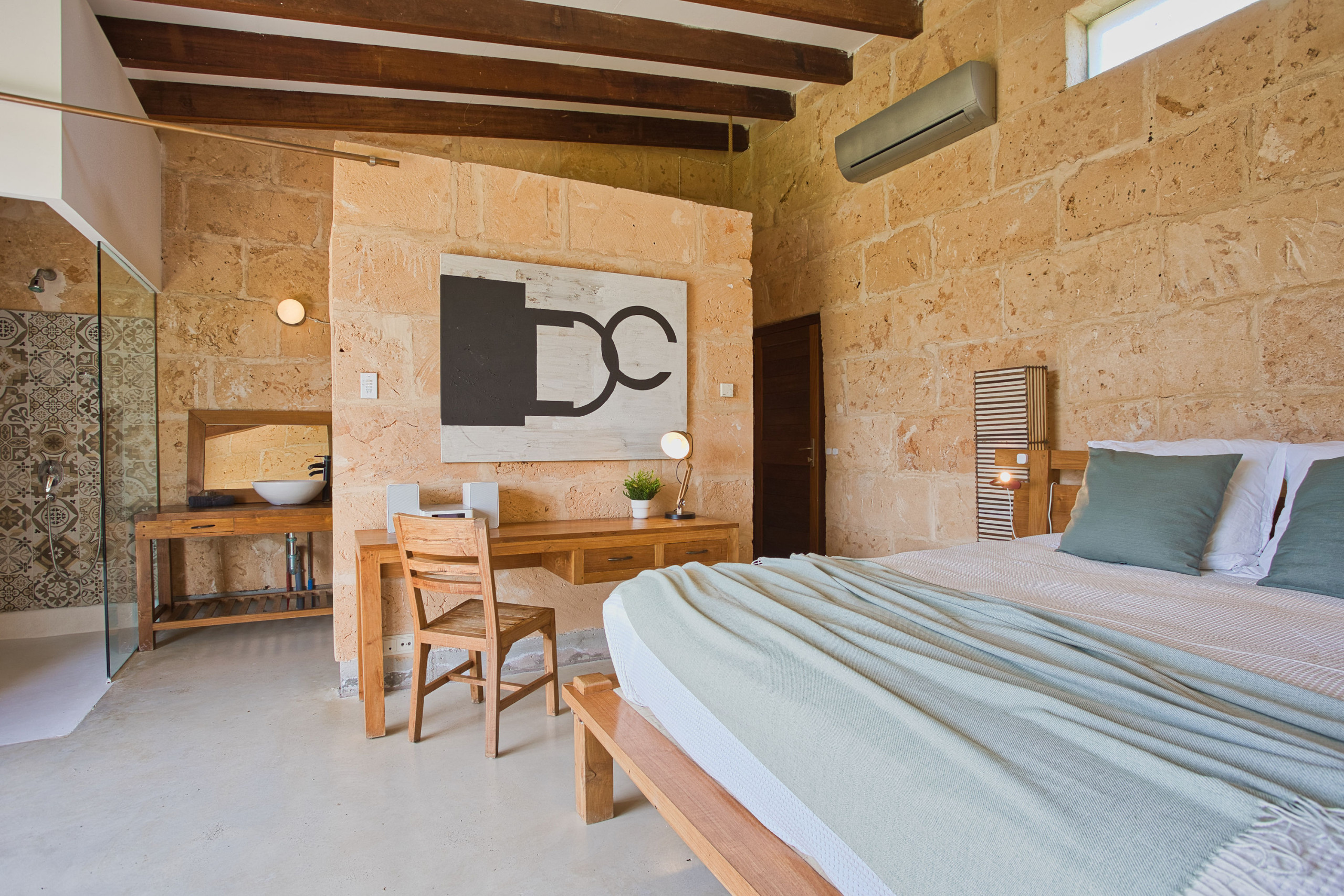 Die Finca wurde in traditioneller Bauweise aus dem typischen Mares-Stein errichtet und verbindet mediterranen Charme mit modernem Wohnkomfort. Der helle Wohn- und Essbereich überzeugt mit offenen Strukturen, einer voll ausgestatteten Küche und direktem Zugang zu den Terrassen. Große Glasfronten schaffen eine freundliche Atmosphäre und verbinden Innen- und Außenbereich harmonisch.