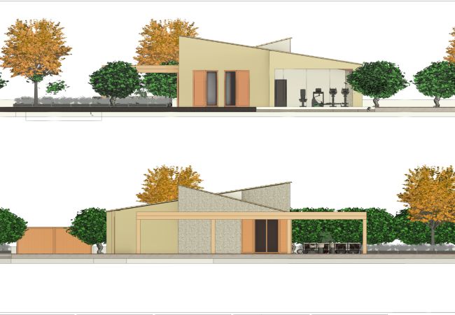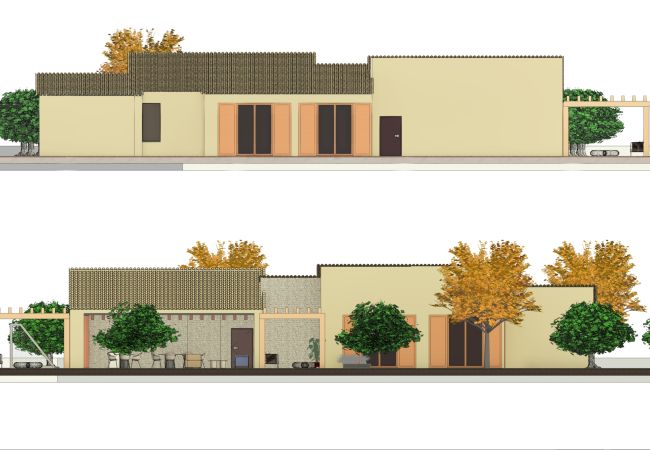 Das geplante Einfamilienhaus umfasst eine bebaute Fläche von ca. 284 m² sowie eine Wohn- und Nutzfläche von ca. 251 m², verteilt auf eine Ebene. Die Architektur kombiniert klare, moderne Linien mit traditionellen Elementen und fügt sich harmonisch in die natürliche Umgebung von Santa Margalida ein. Herzstück der Villa ist der großzügige offene Wohn-, Ess- und Küchenbereich mit ca. 93 m², der durch große Fensterflächen direkten Zugang zu den Terrassen und dem Poolbereich bietet und ein fließendes Indoor-Outdoor-Living ermöglicht.