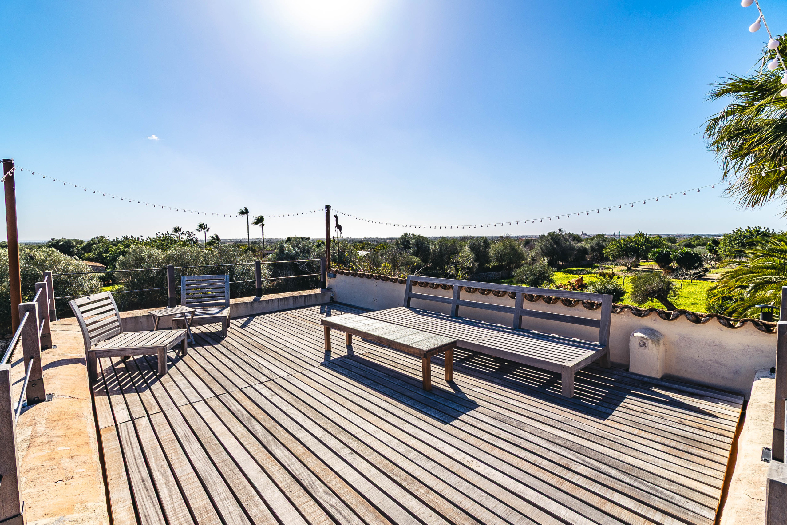 Der großzügige Außenbereich lädt zum Leben im Freien ein: Ein Pool, eine Terrasse von ca. 20 m², eine weitläufige Sonnenterrasse von ca. 64 m² sowie eine Dachterrasse von ca. 35 m² mit leichtem Meer- und Bergblick schaffen zahlreiche Rückzugsorte unter der mallorquinischen Sonne. Der liebevoll angelegte Garten mit Außendusche, Steingrill, Grillplatz sowie Garten- und Terrassenmöbeln bietet den perfekten Rahmen für entspannte Stunden und gesellige Abende. Für zusätzlichen Komfort stehen mehrere Stellplätze für PKWs sowie ein Carport zur Verfügung.
