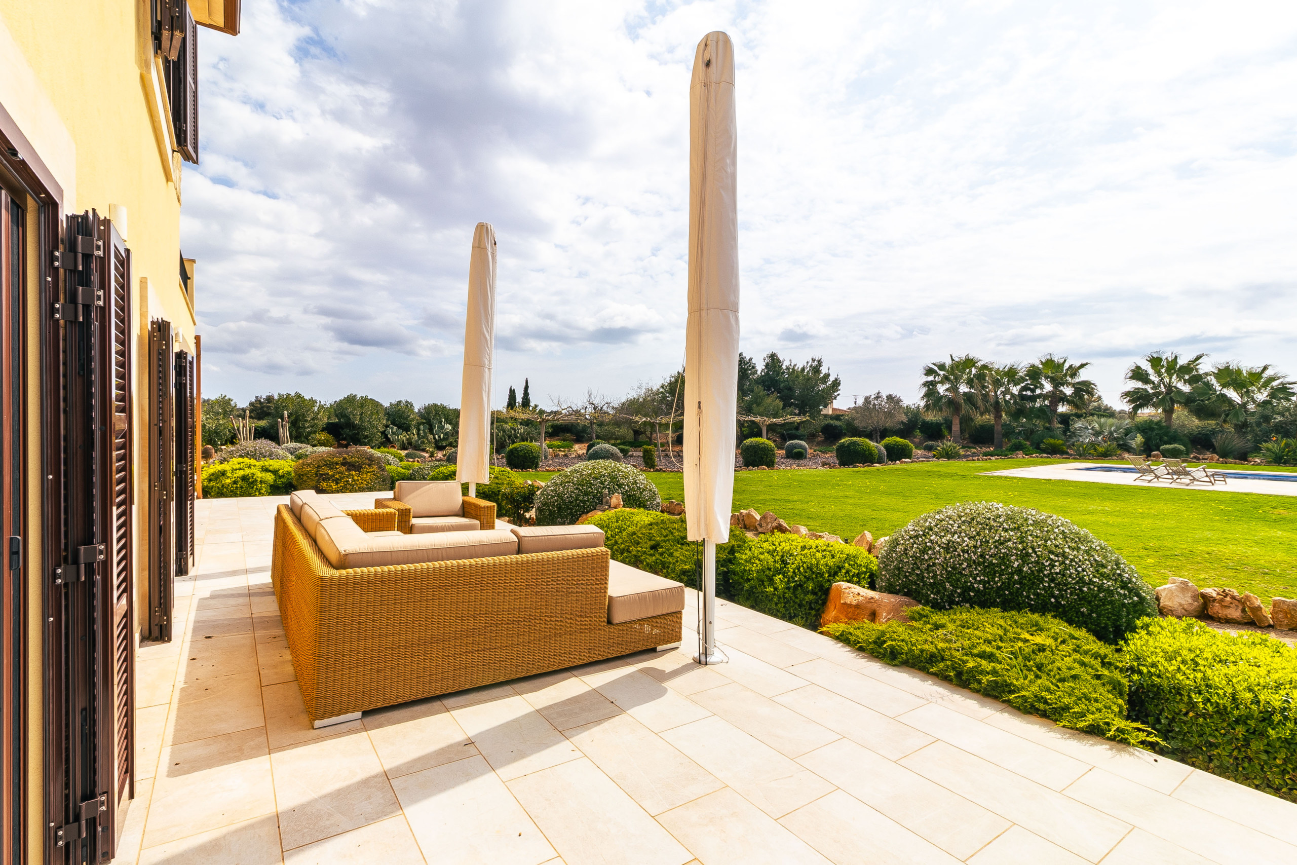 Der Außenbereich ist ein echtes Highlight dieser Immobilie. Der weitläufig angelegte Garten schafft eine Atmosphäre von Ruhe und Privatsphäre, während der Poolbereich mit großzügiger Sonnenterrasse zu entspannten Tagen unter der mallorquinischen Sonne einlädt. Eine teilweise überdachte Terrasse mit Essbereich bietet den perfekten Rahmen für lange Abende im Freien. Unterschiedliche Außenbereiche ermöglichen es, den Tag je nach Sonnenstand und Stimmung immer wieder neu zu genießen. Zusätzlich stehen eine Garage sowie großzügige Stellflächen für mehrere Fahrzeuge zur Verfügung. Ein separater Geräteraum sowie ein weiterer Schuppen bieten praktischen Stauraum.