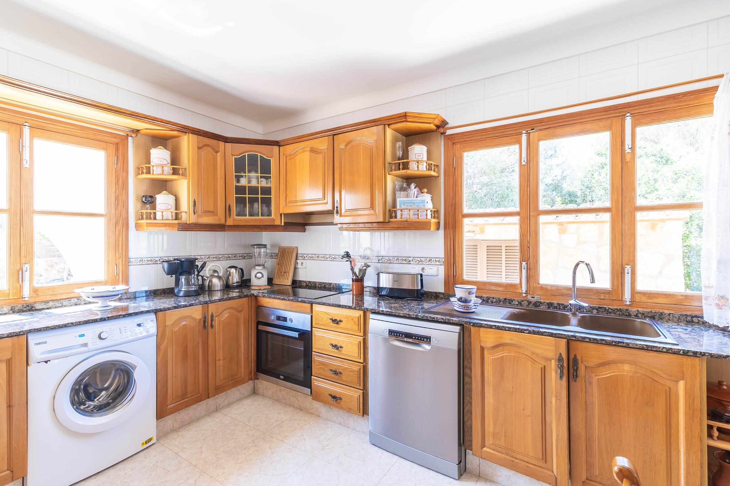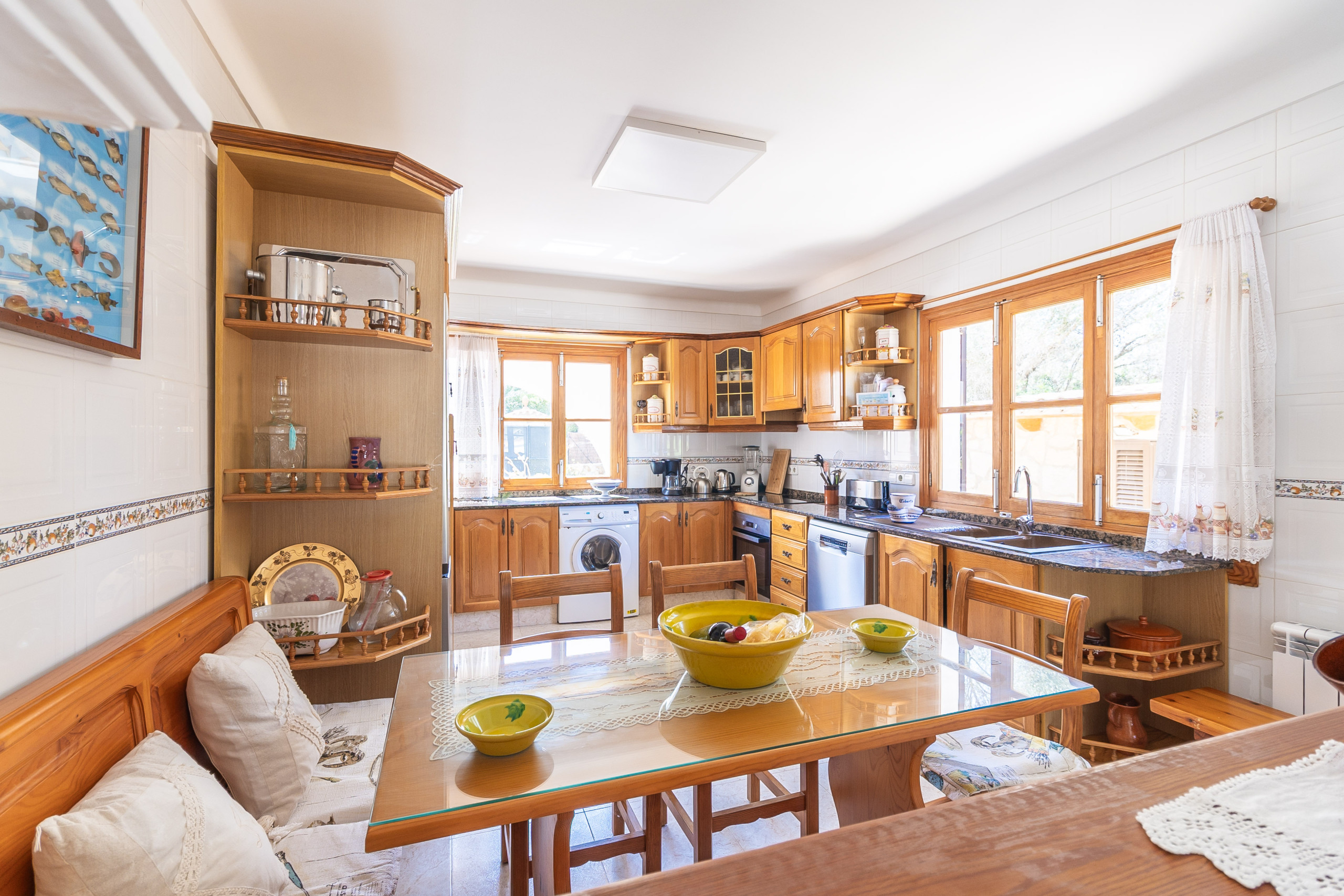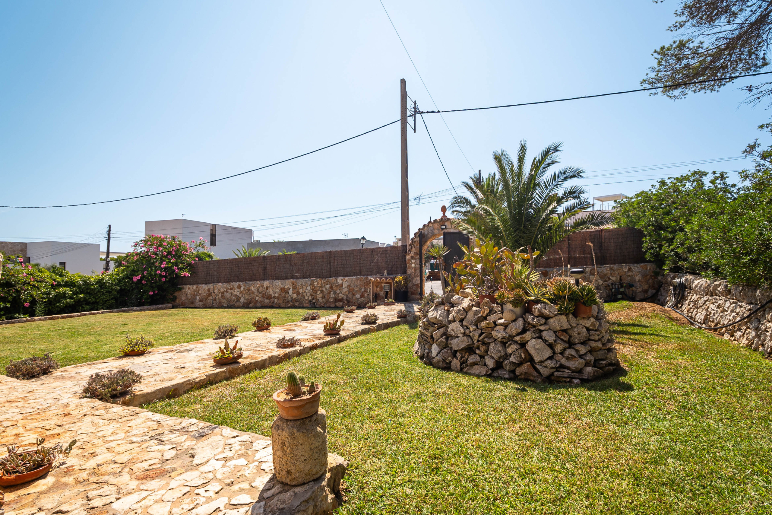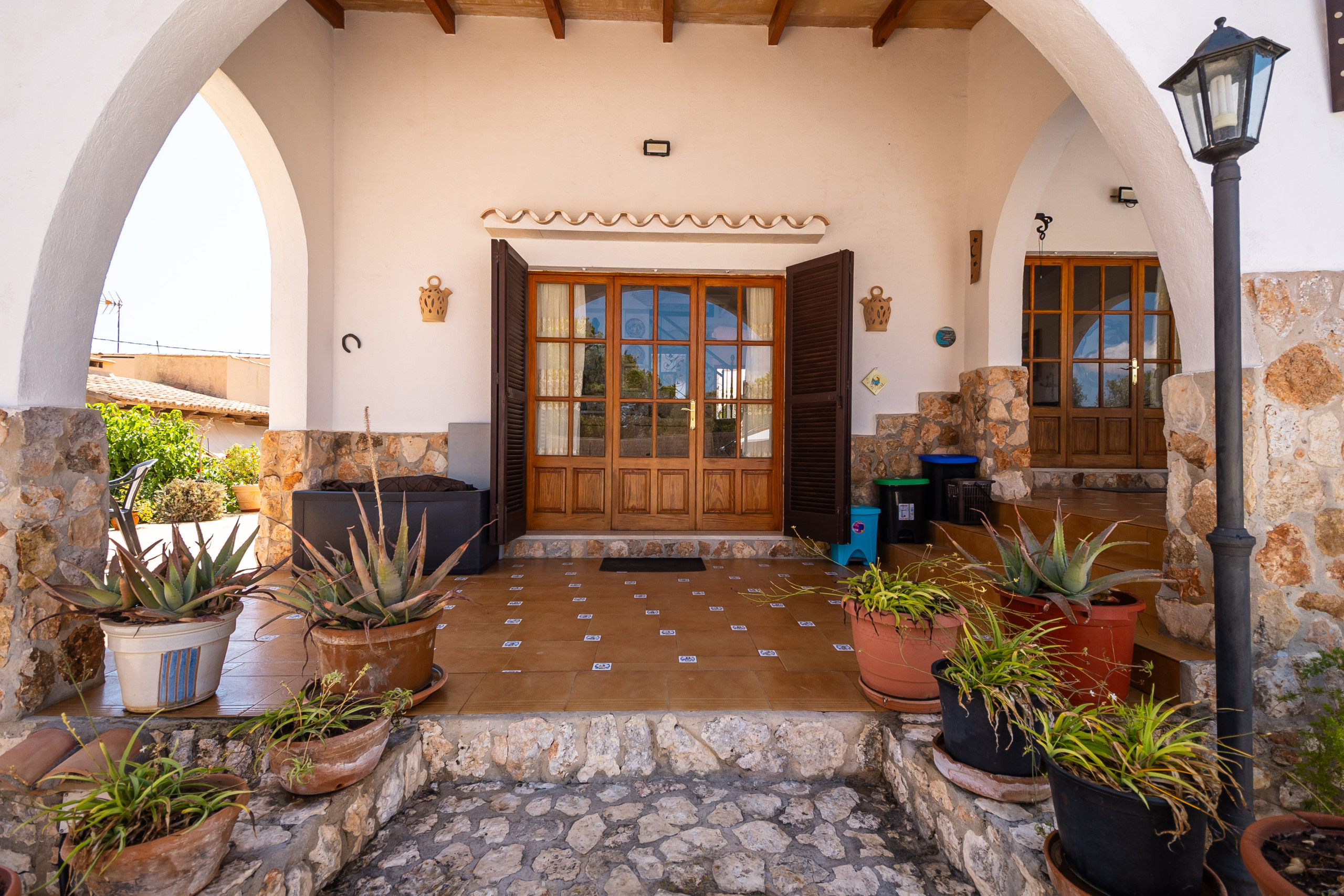 Der Außenbereich von Can Monxu bietet alles, was man für einen entspannten Aufenthalt im Süden Mallorcas benötigt: mehrere sonnige und schattige Terrassen, eine Pergola, einen gemauerten Grillplatz sowie einen privaten Pool (7 × 3,5 m) mit Außendusche. Die verschiedenen Bereiche laden dazu ein, das mediterrane Klima in vollen Zügen zu genießen. Anfang 2026 wird das Ferienhaus zudem mit neuen Klimaanlagen und modernen Isolierglasfenstern ausgestattet, um den Wohnkomfort weiter zu erhöhen.