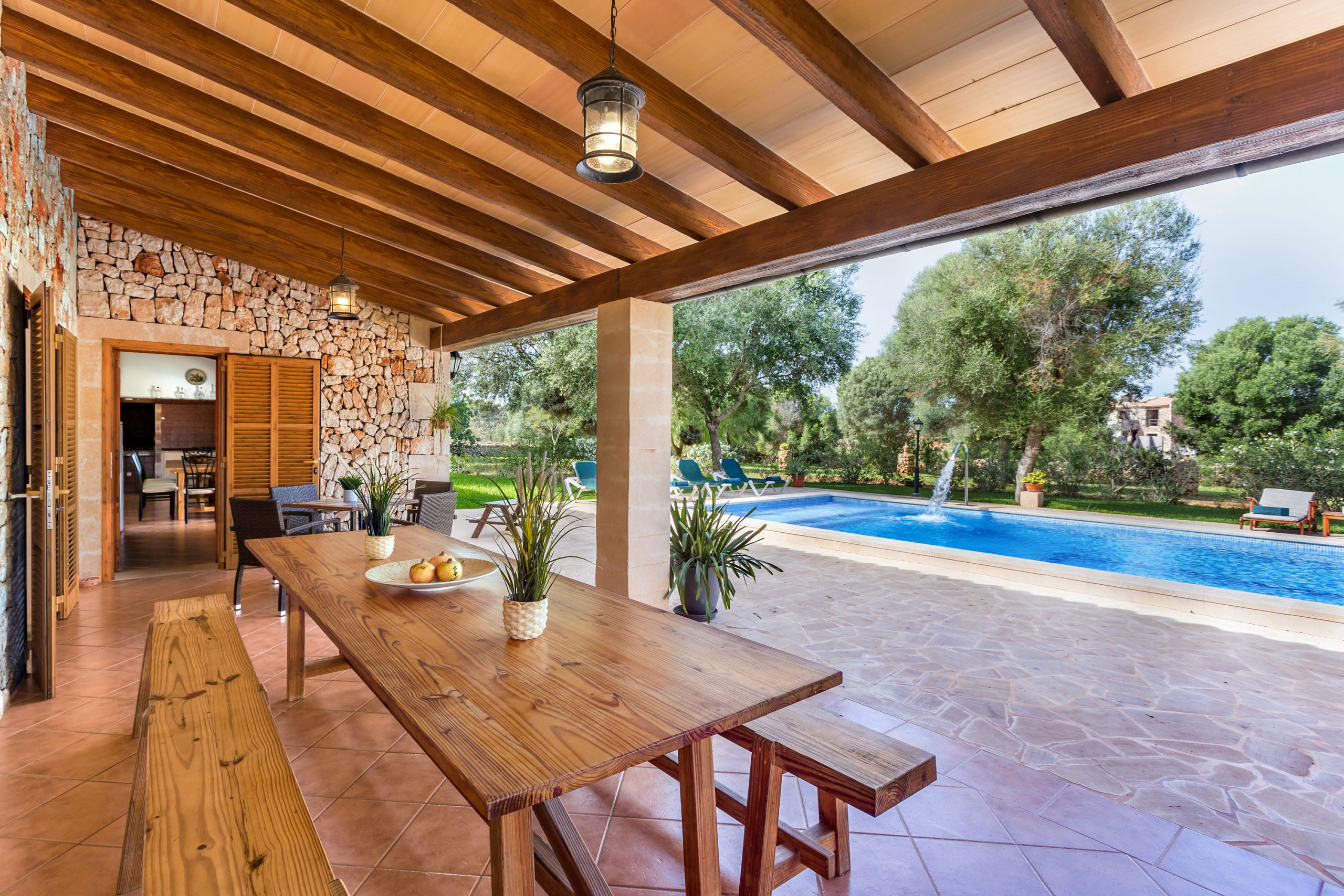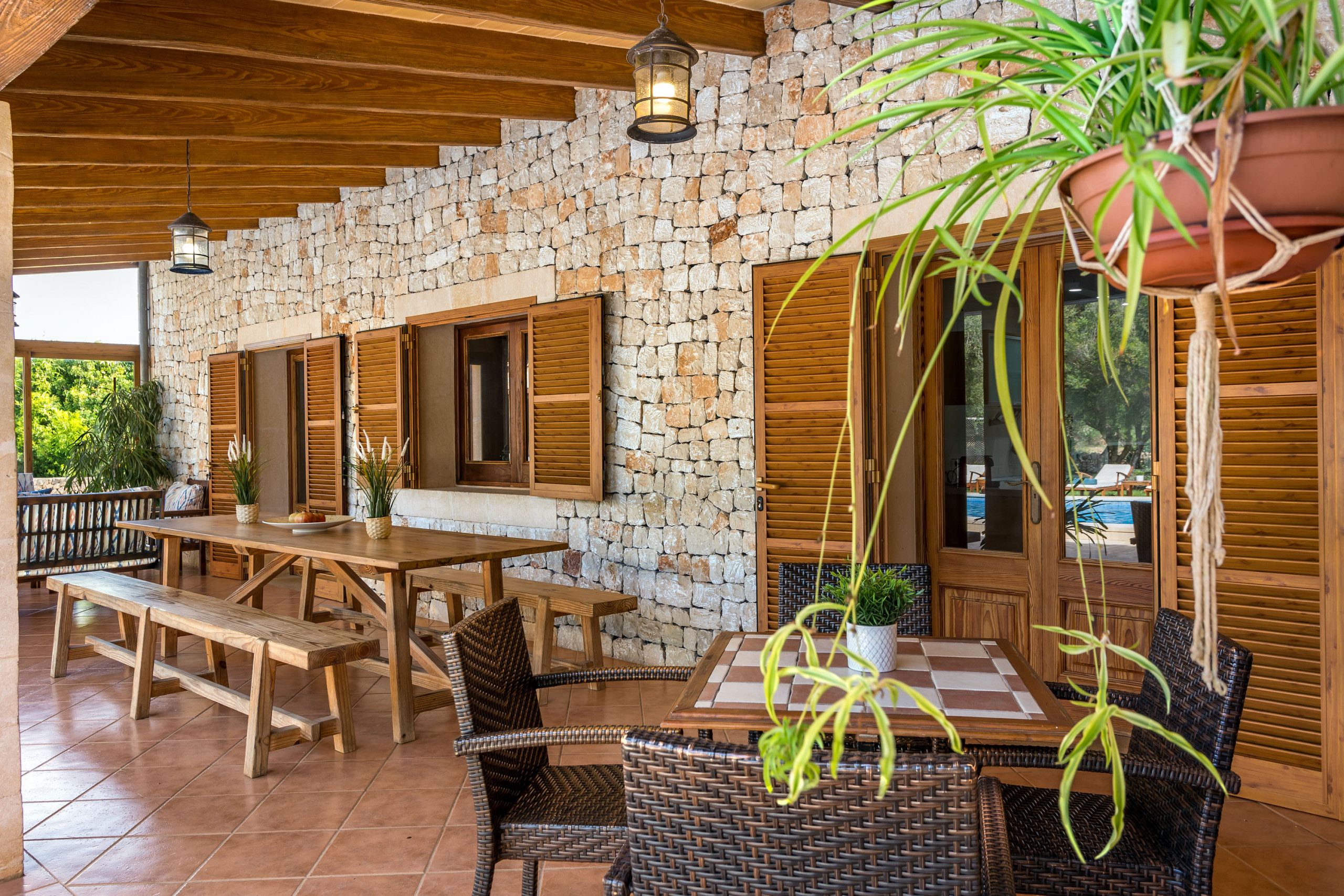 Im Außenbereich der Finca haben Sie eine große, überdachte Terrasse, auf der Sie herrlich alle gemeinsam ein traumhaftes Abendessen genießen können oder noch bis spät in die Nacht bei Kerzenschein zusammensitzen. Die Finca verfügt über einen eigenen Grillraum, wo Sie die Köstlichkeiten ganz frisch zubereiten können.