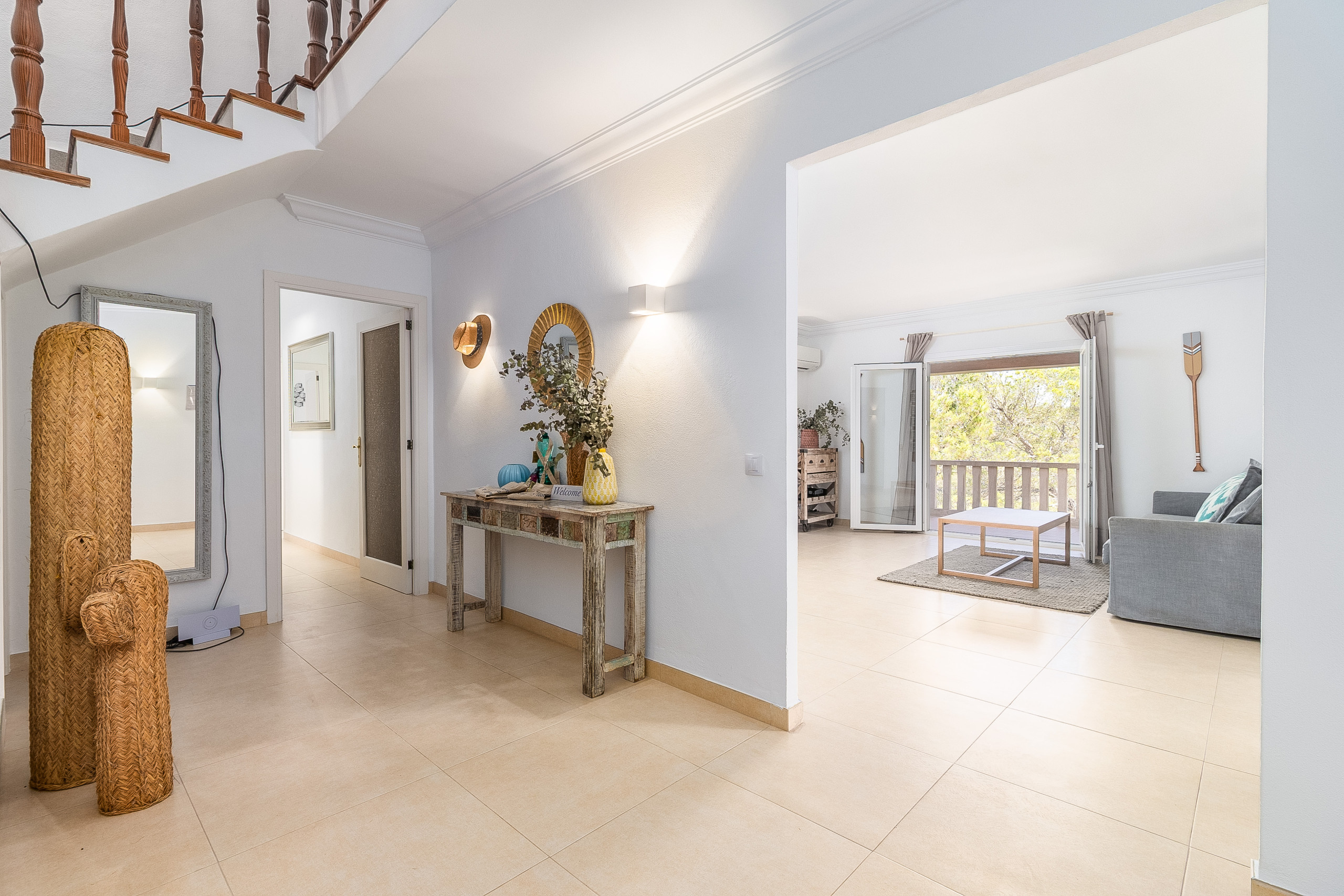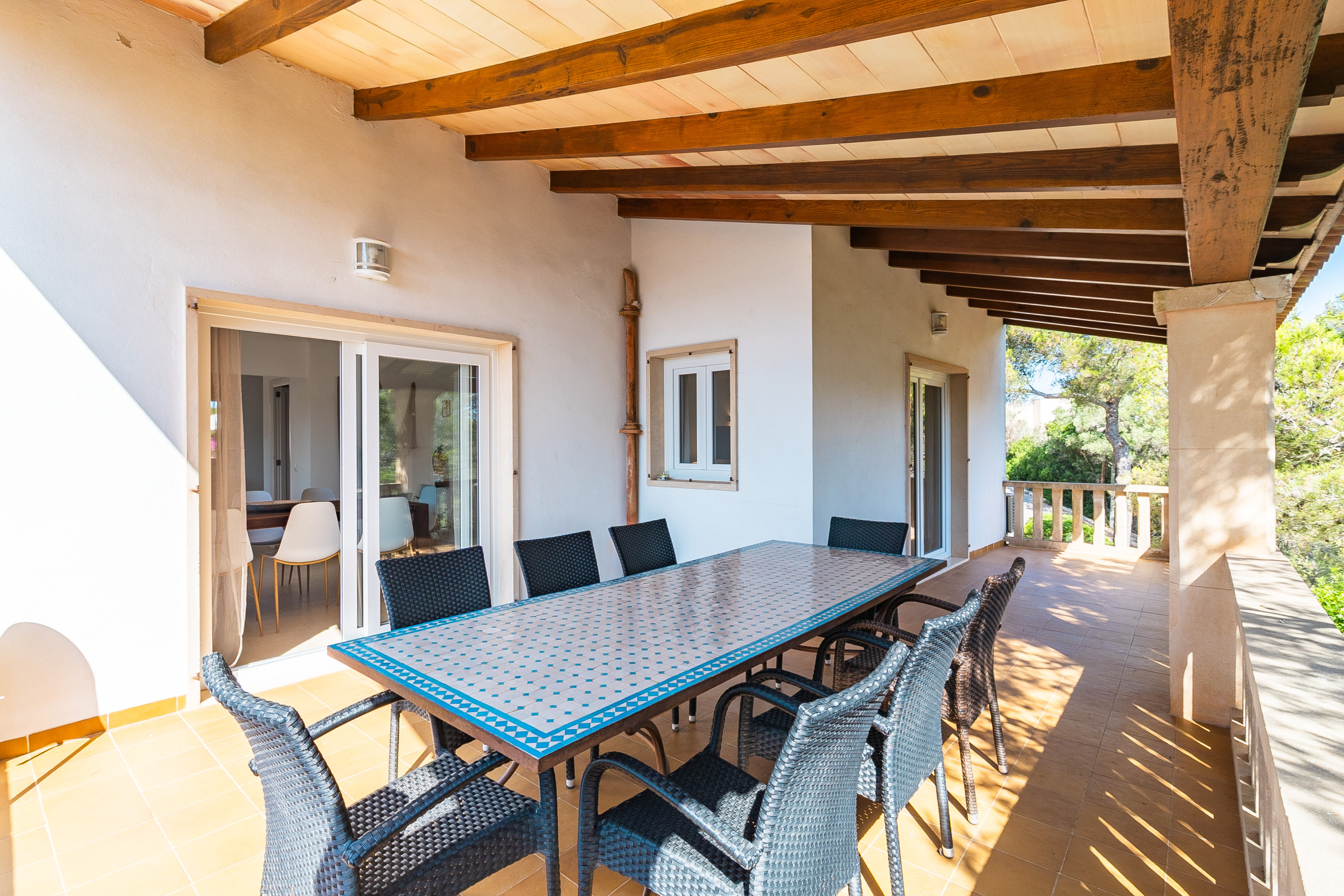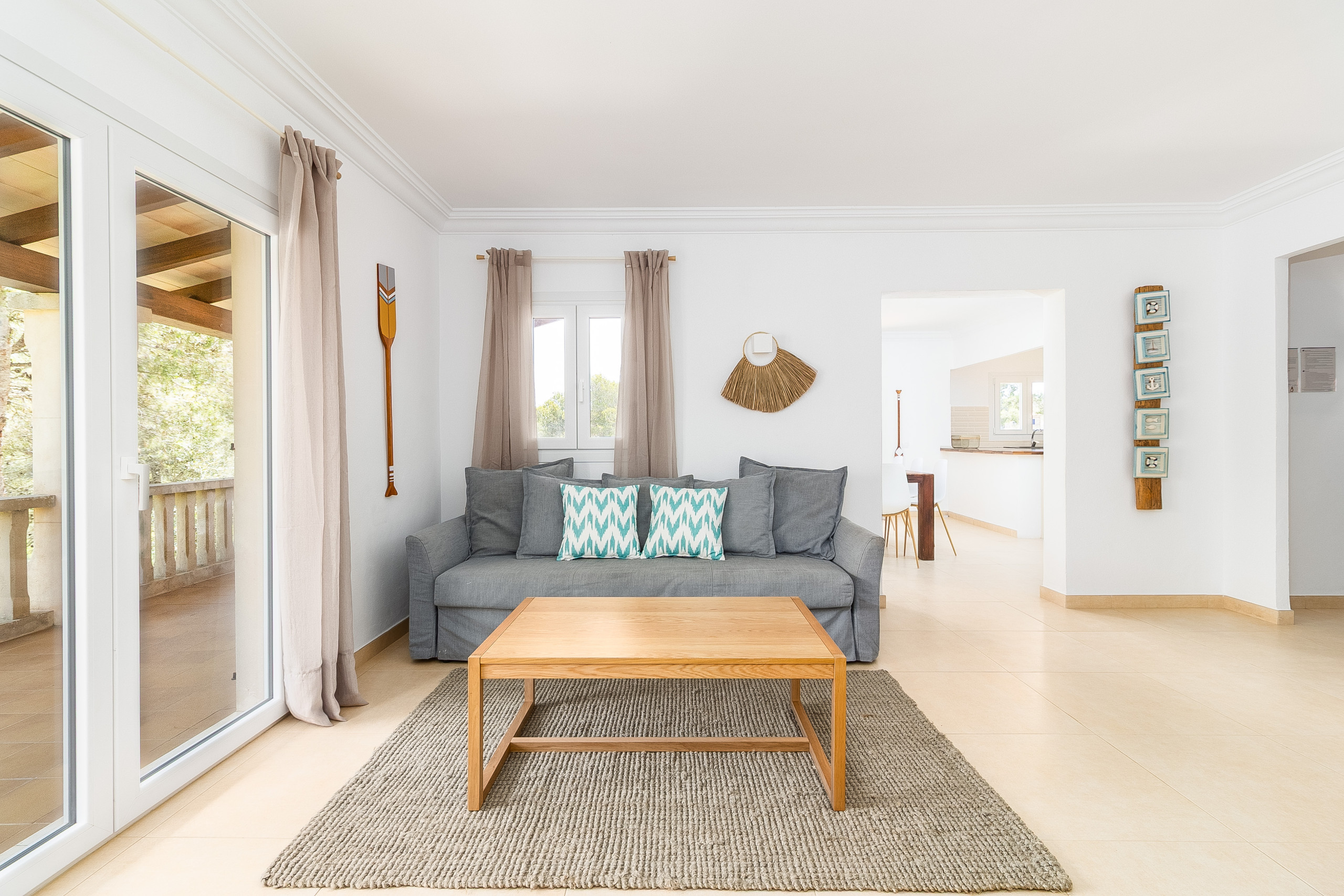Besonders schön ist der Außenbereich: Mit einem großen Pool, der zum Abkühlen einlädt, und einem Essbereich unter freiem Himmel bietet die Villa Can Ferrando eine herrliche Umgebung für entspannte Nachmittage und gesellige Abende. Der Garten und der uneingeschränkte Blick auf das Meer und den Strand lassen Sie die natürliche Schönheit von Cala Santanyi in vollen Zügen genießen.