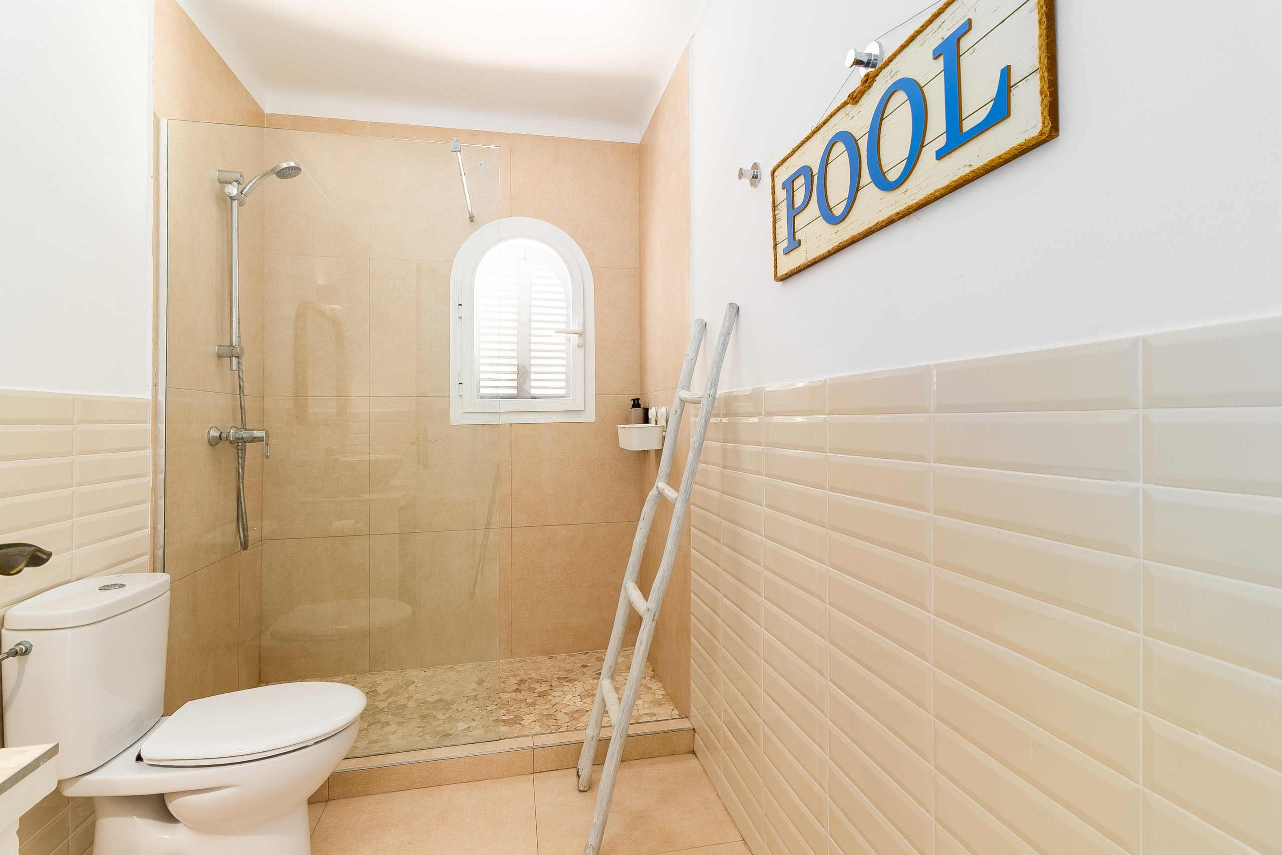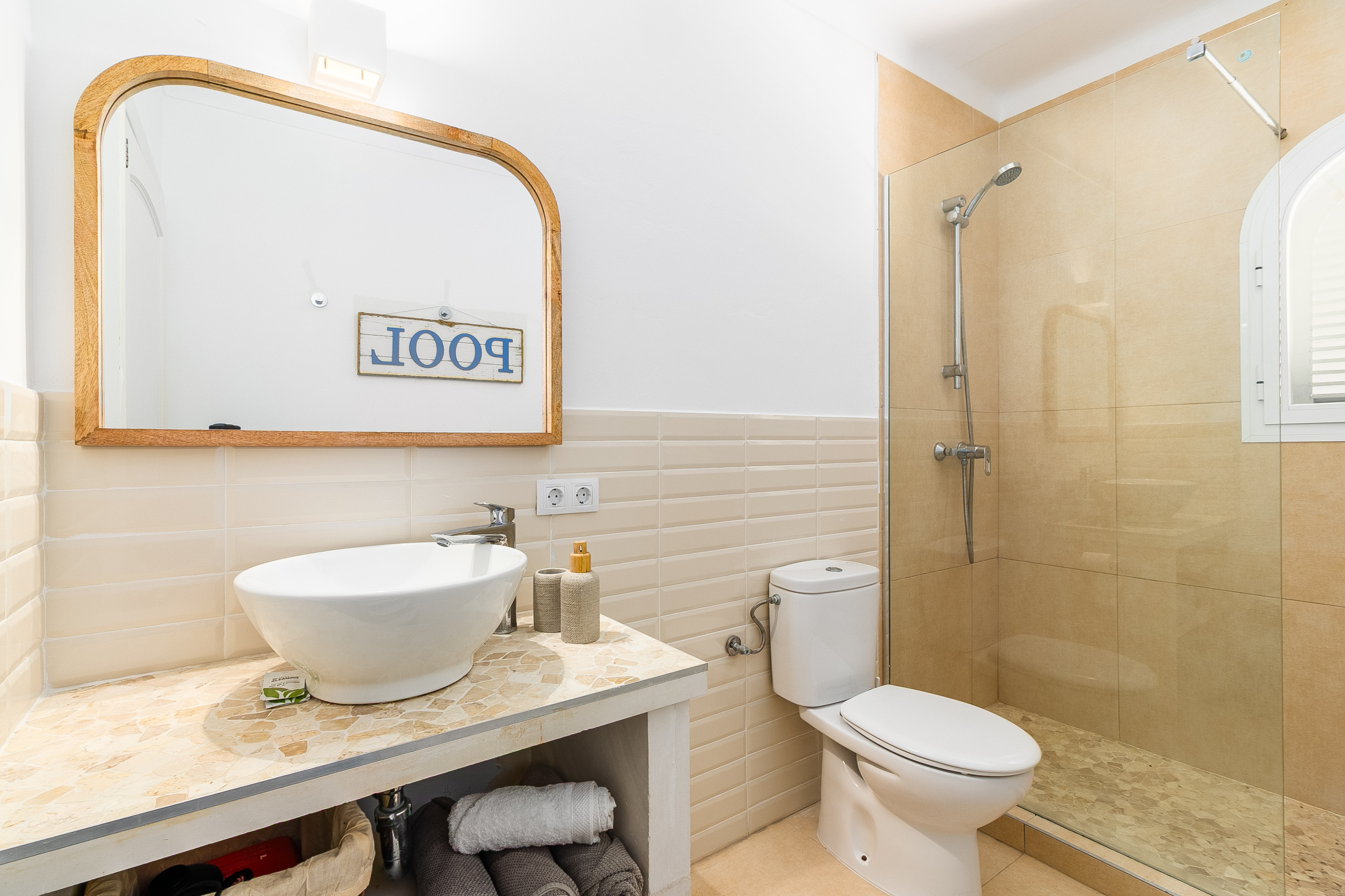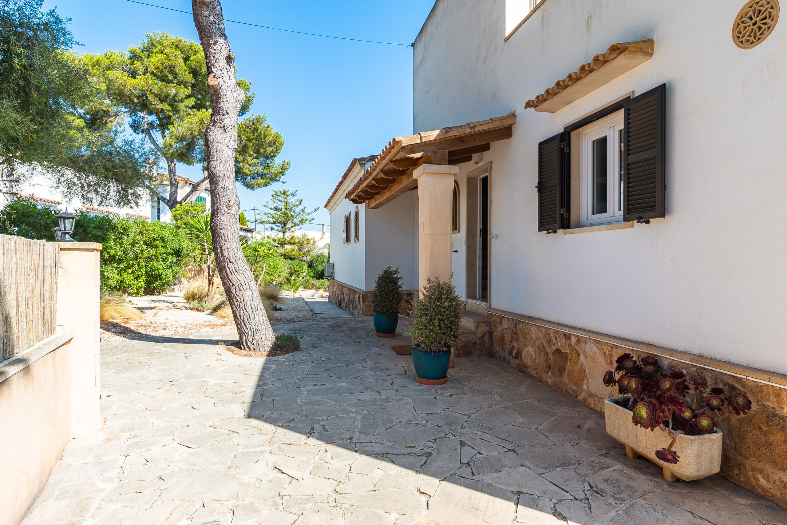 Besonders schön ist der Außenbereich: Mit einem großen Pool, der zum Abkühlen einlädt, und einem Essbereich unter freiem Himmel bietet die Villa Can Ferrando eine herrliche Umgebung für entspannte Nachmittage und gesellige Abende. Der Garten und der uneingeschränkte Blick auf das Meer und den Strand lassen Sie die natürliche Schönheit von Cala Santanyi in vollen Zügen genießen.