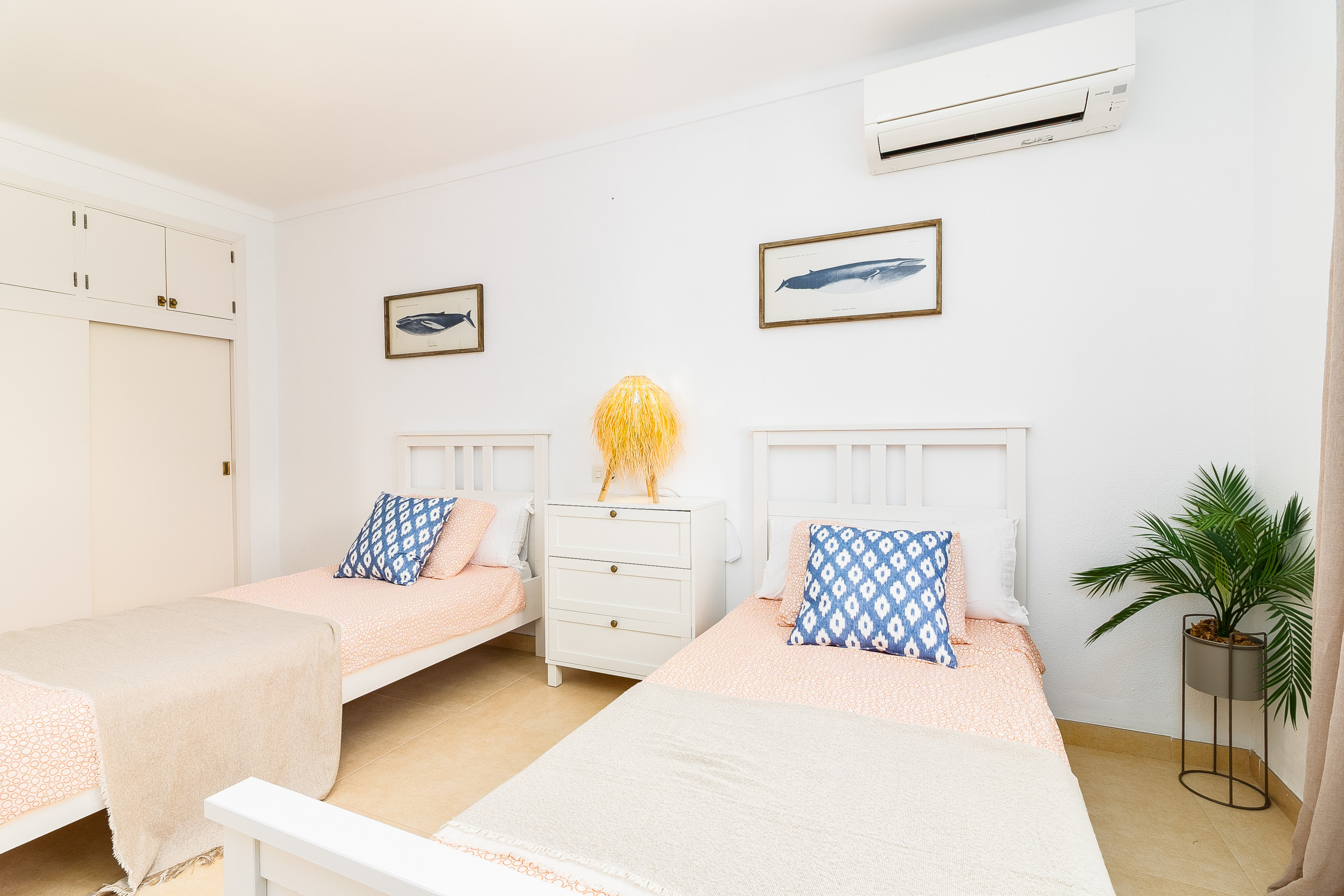 Es gibt insgesamt drei Schlafzimmer: ein Zimmer mit einem Doppelbett sowie zwei weitere mit jeweils zwei Einzelbetten. Dazu kommen zwei moderne Badezimmer mit Dusche, die Komfort und Privatsphäre für alle Gäste bieten. Insgesamt finden in der Villa bis zu sechs Personen bequem Platz.