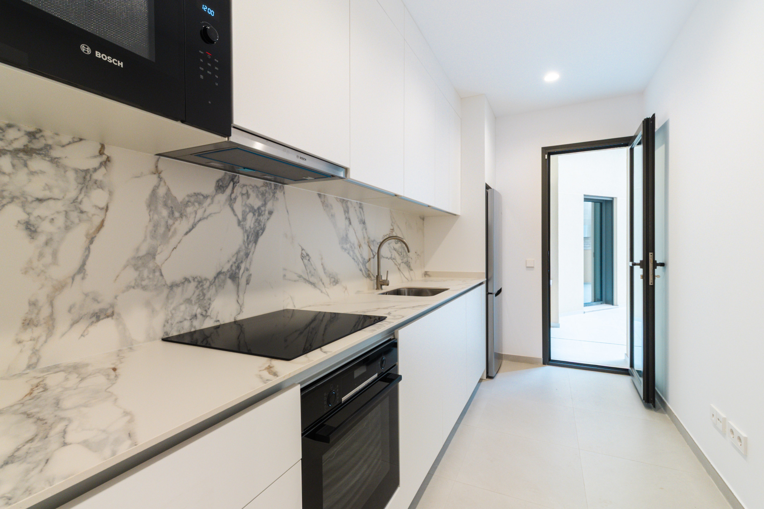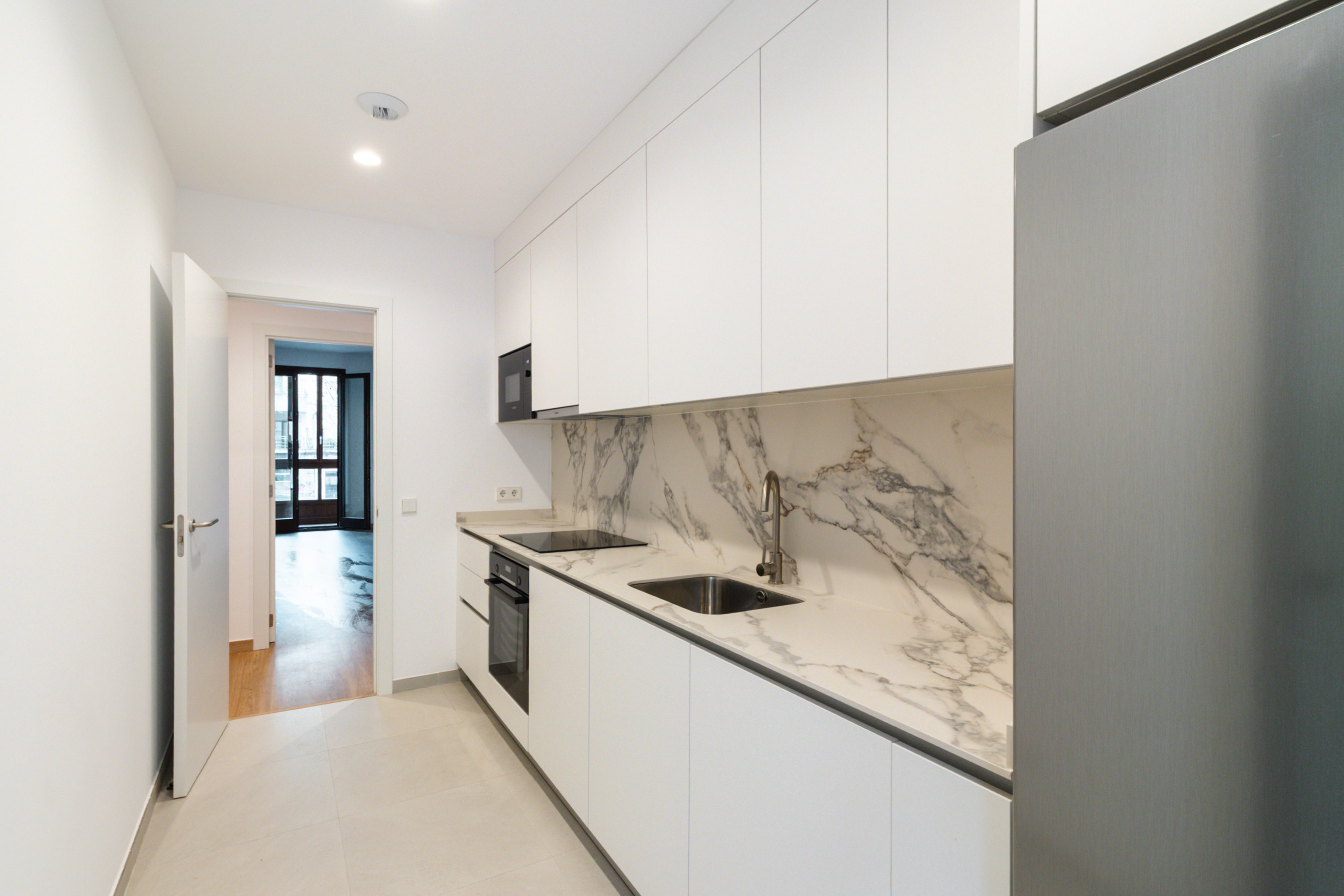 Las grandes superficies acristaladas proporcionan una sensación de espacio inundado de luz, todas las habitaciones disponen de mucha luz natural del día y crean un ambiente de vivienda abierto y agradable. En los dormitorios hay armarios empotrados a medida disponibles, que ofrecen un espacio de almacenamiento práctico para el día a día en un alquiler a largo plazo.