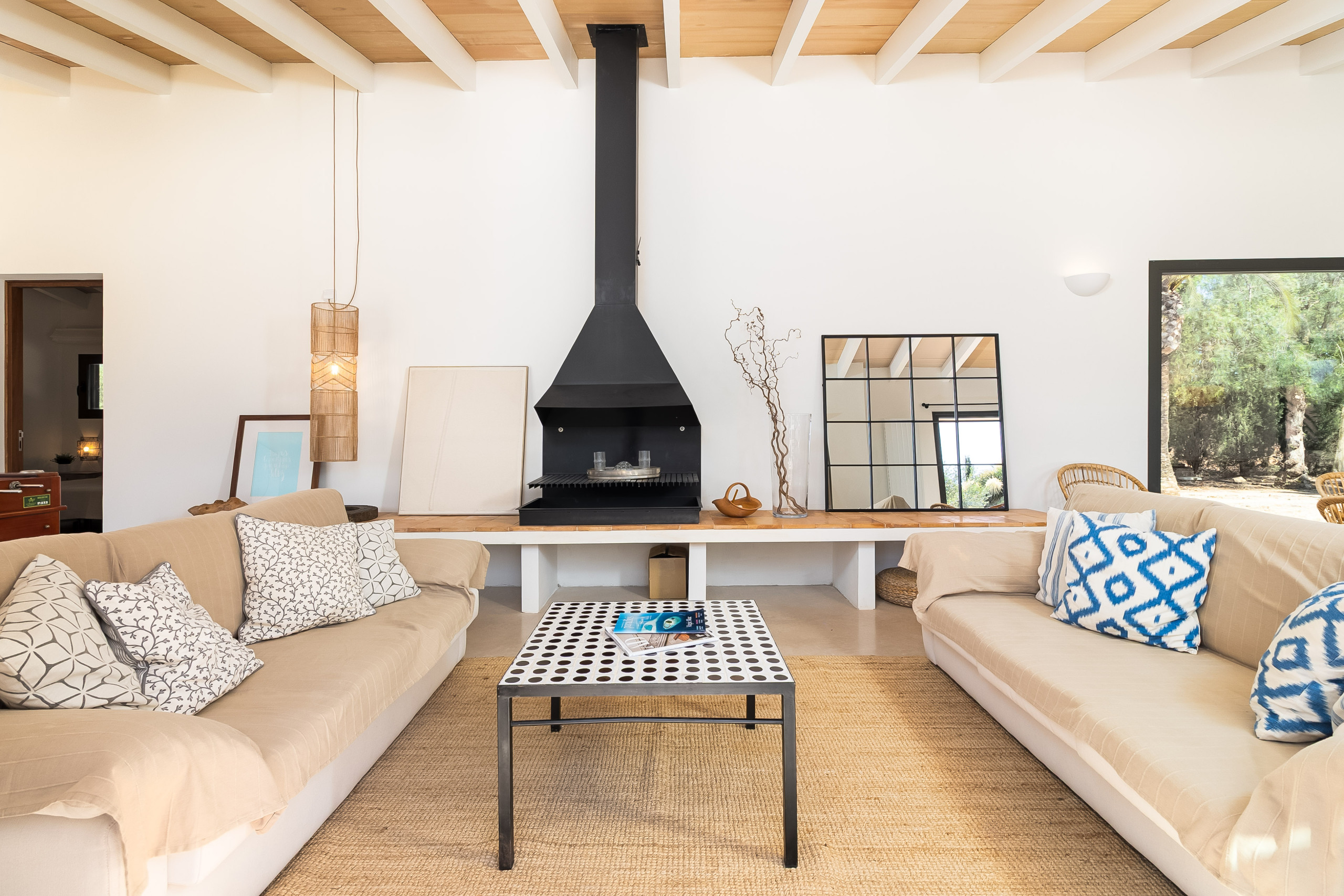 La casa de vacaciones Sa Sini es un retiro elegante en una ubicación espectacular cerca de Es Trenc. Absoluta tranquilidad, paisajes extensos, molinos de viento tradicionales en el horizonte y ningún vecino a la vista: la casa de vacaciones Sa Sini es un lugar que desacelera instantáneamente. Incrustada en la suave naturaleza del sur de Mallorca, esta elegante propiedad le recibe con mucho espacio, luz y un delicado sentido de la comodidad y el diseño.