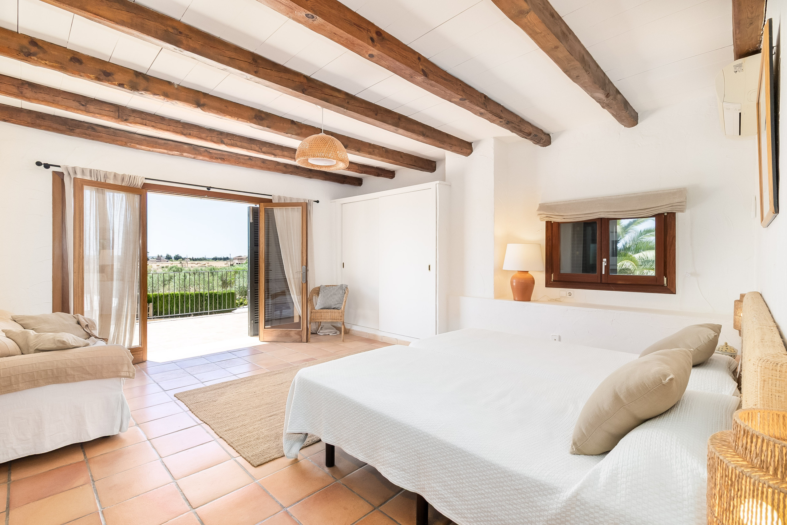En el soleado sur de Mallorca, incrustada en un paisaje tranquilo de cipreses, olivos y amplitud mediterránea, se encuentra la elegante finca Can Riera, un generoso alojamiento vacacional para hasta doce personas que combina autenticidad rural con confort de lujo. La paradisíaca playa natural de Es Trenc está a solo unos minutos de distancia, al igual que el encantador pueblo de Campos, con sus mercados semanales, cafés y restaurantes.