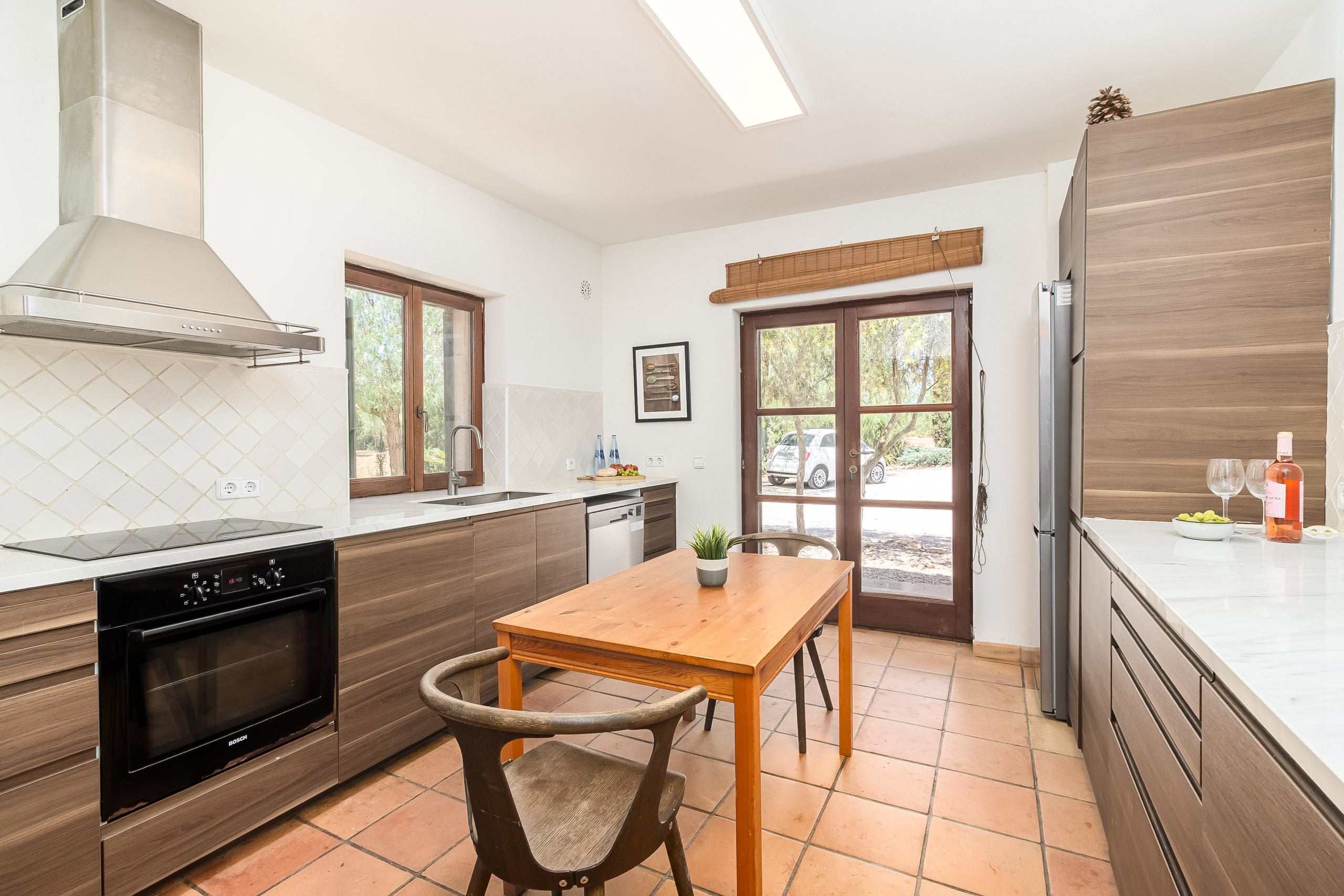 Por supuesto, también hay comodidades prácticas: estacionamientos techados directamente en la casa, un equipamiento moderno, WiFi rápido - y todo esto inmerso en la pura idílica atmósfera mallorquina.