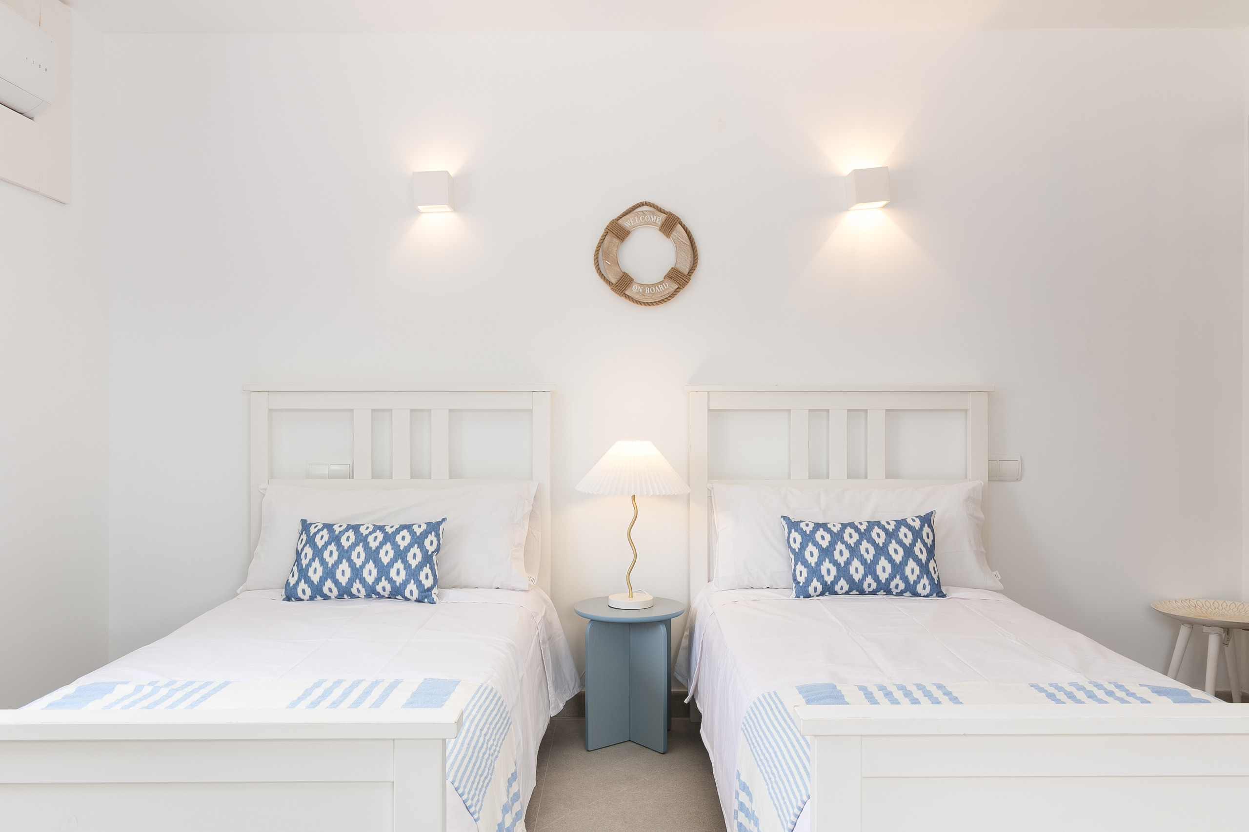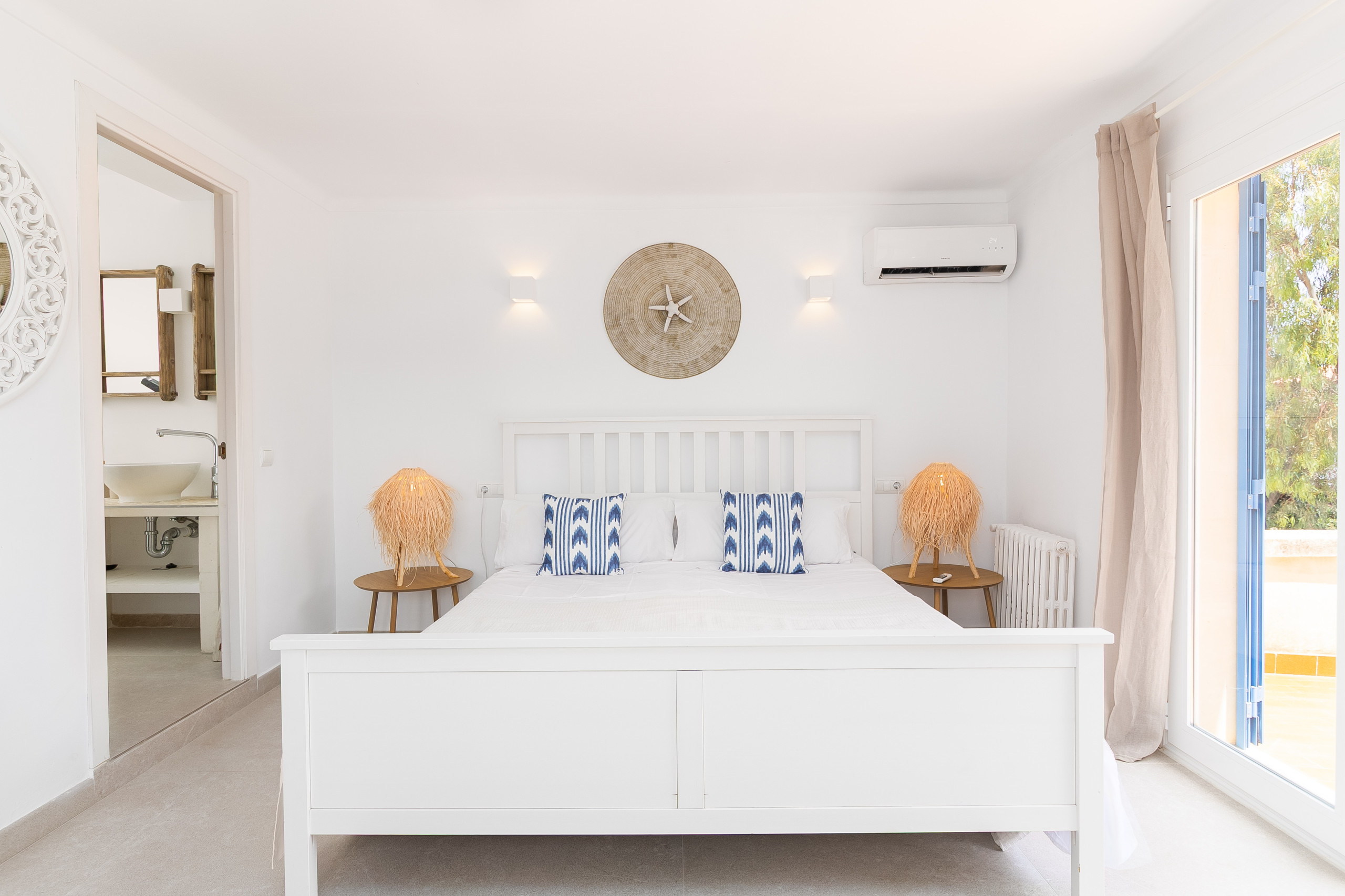 Todos los 3 dormitorios están diseñados de manera similar y equipados con una cama de matrimonio. Una de las camas también puede convertirse en dos camas individuales. Además, la villa cuenta con aire acondicionado frío/calor y calefacción, por lo que es adecuada también para los días más fríos del año.
