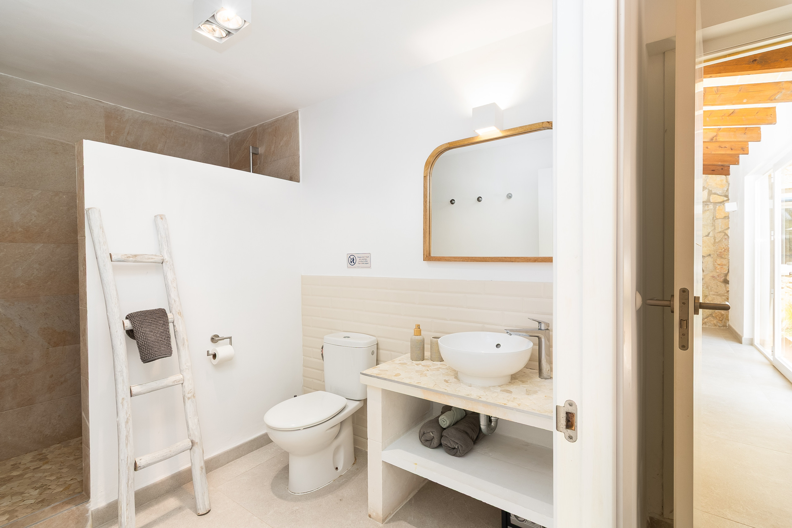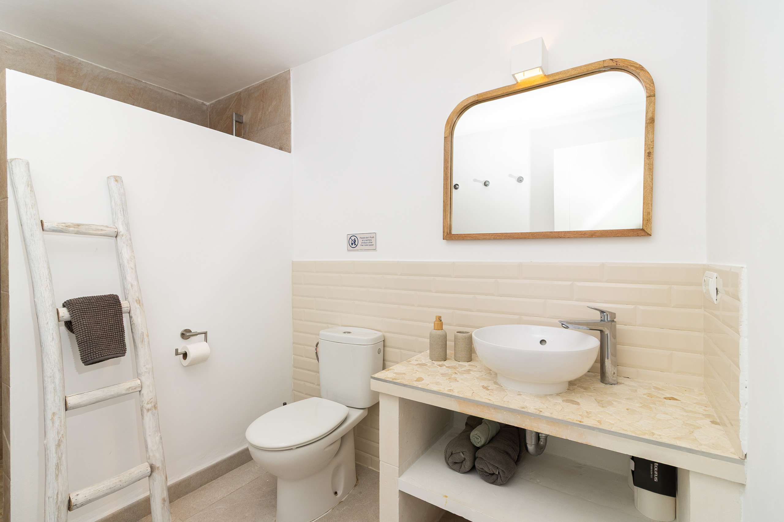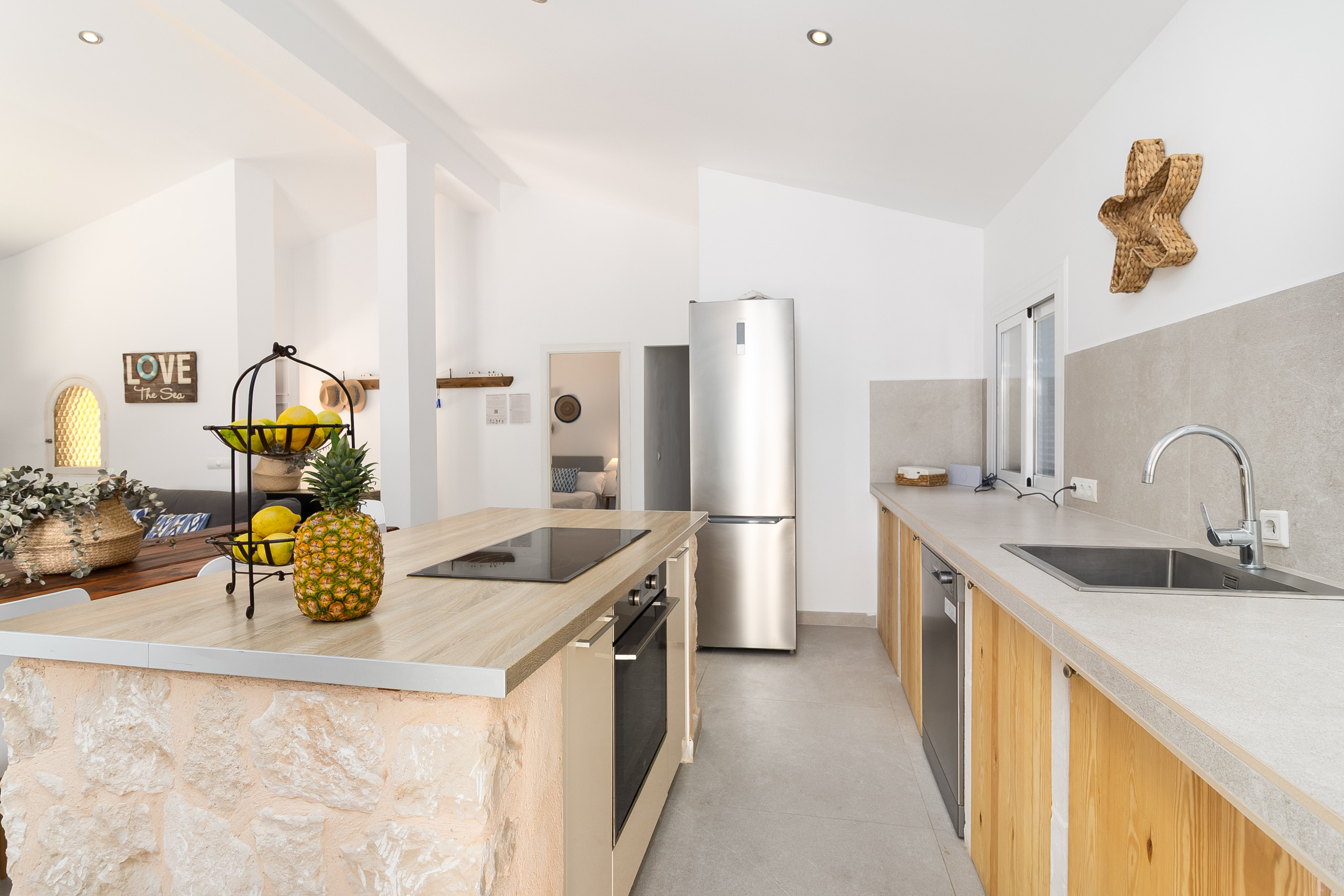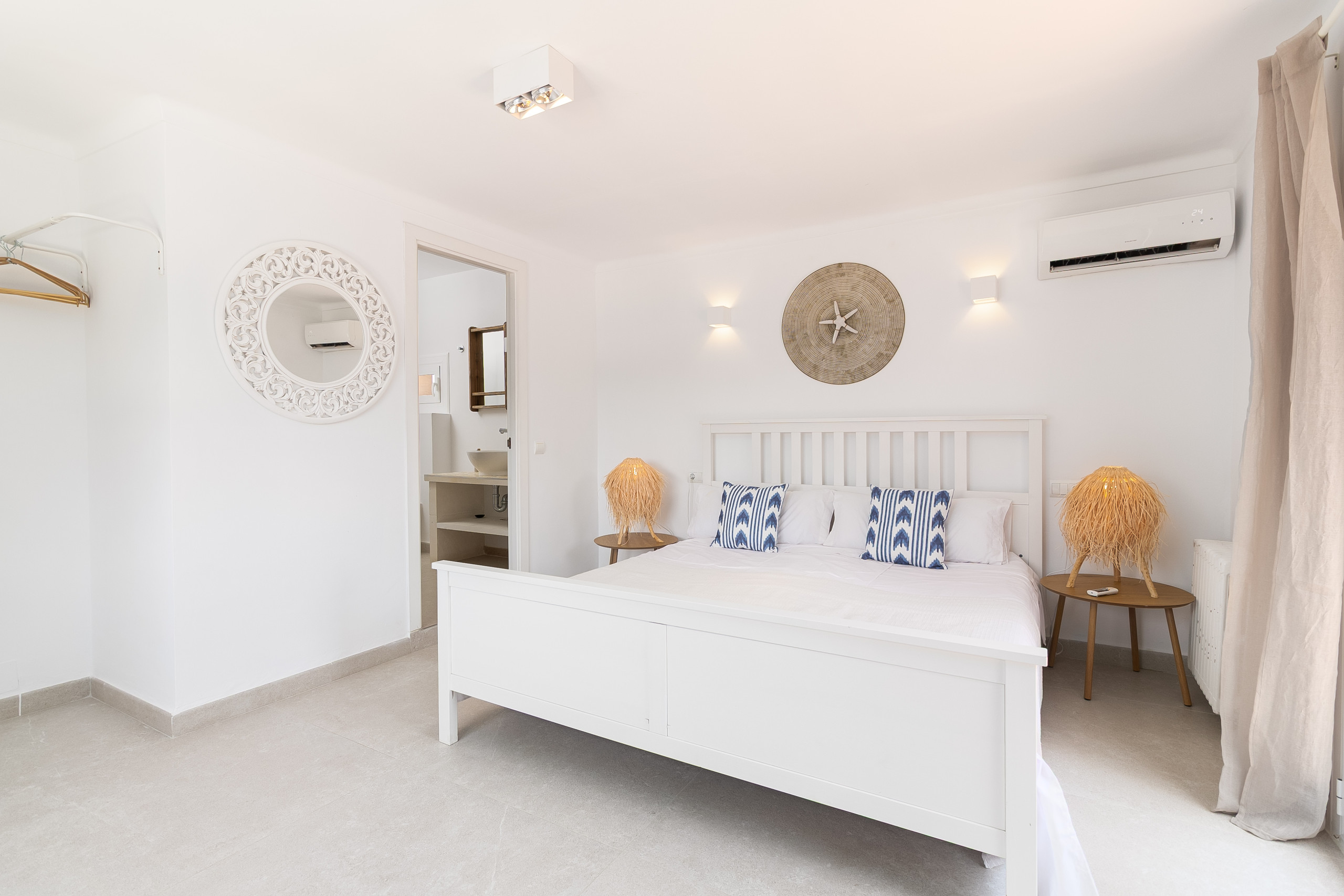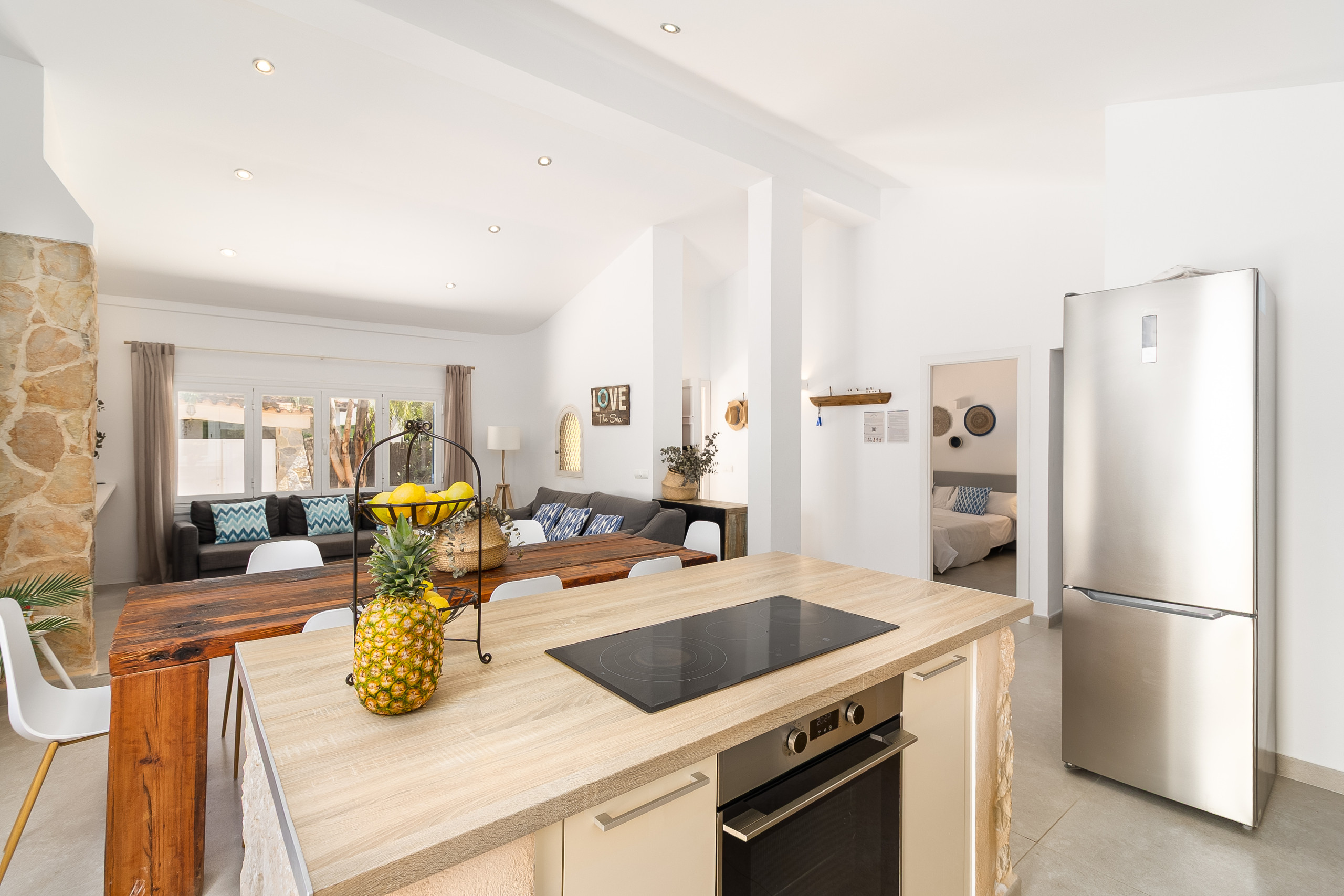 En las inmediaciones se encuentra el encantador pueblo de Santanyí, conocido por sus casas revestidas de piedra y su variada oferta de restaurantes, bares y tiendas. Los miércoles y sábados se celebra un colorido mercado local que ofrece desde frutas y verduras locales hasta recuerdos hechos a mano. Además, en 5-15 minutos en coche puede llegar a las bahías y playas más hermosas e idílicas de la costa sureste, como el famoso Es Trenc, donde puede pasear kilómetros a lo largo del mar turquesa o experimentar una puesta de sol impresionante.