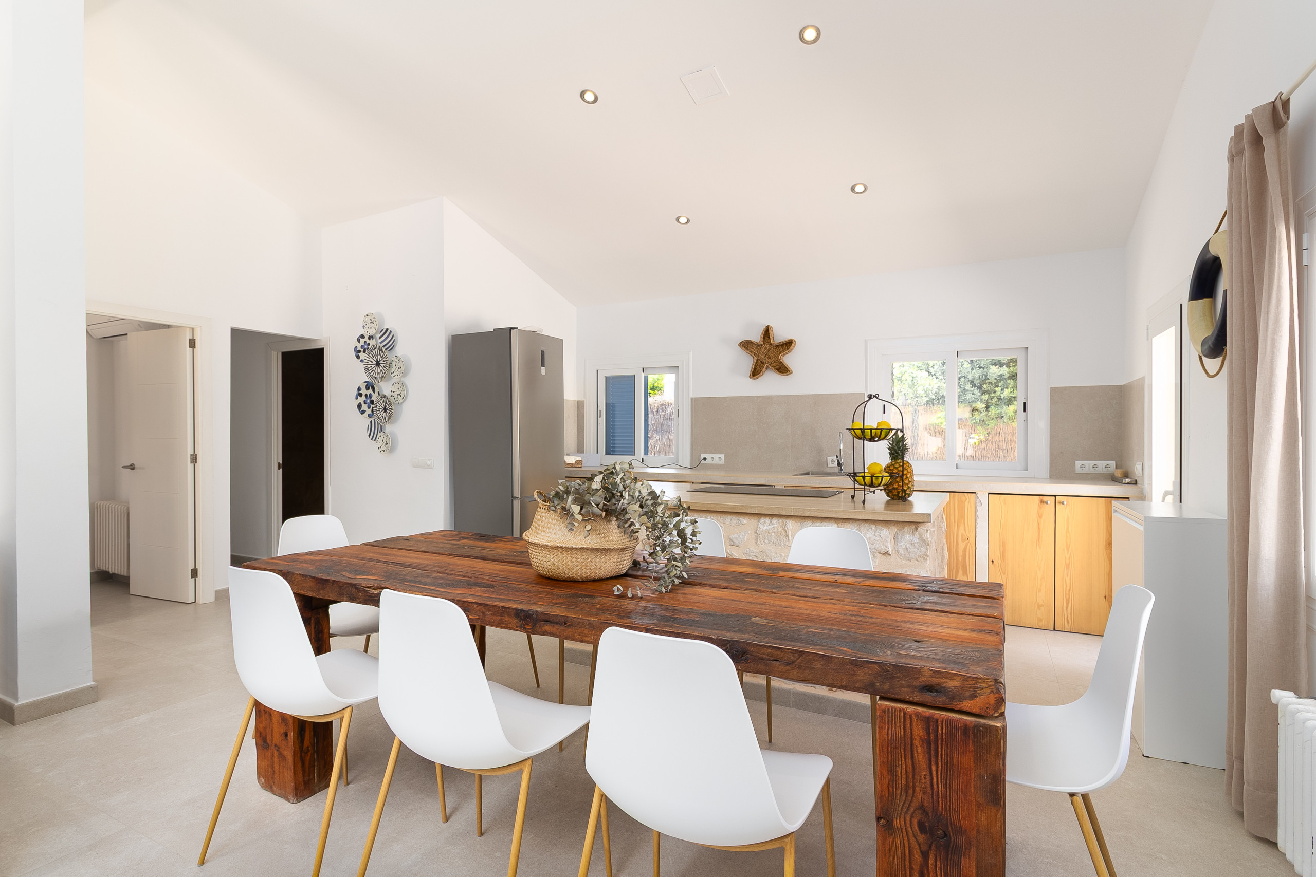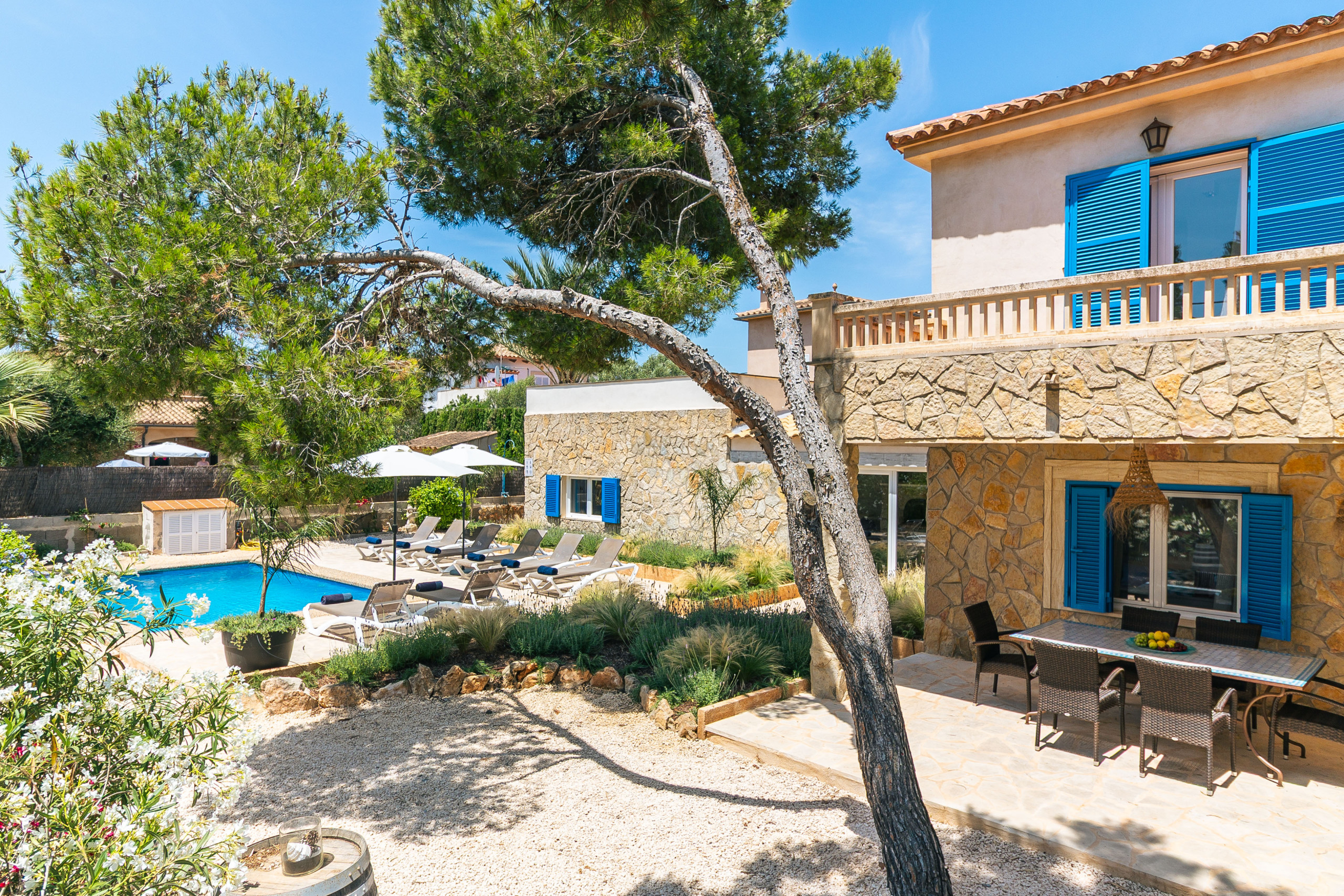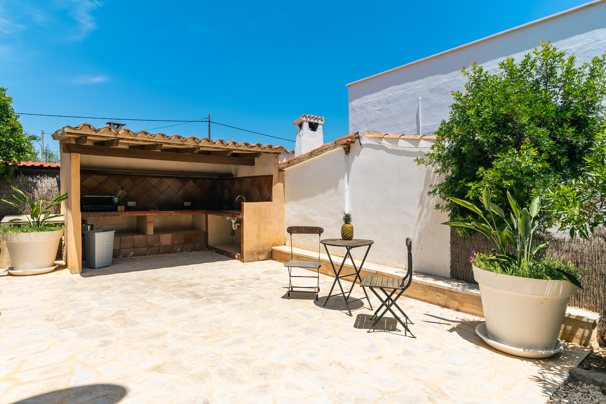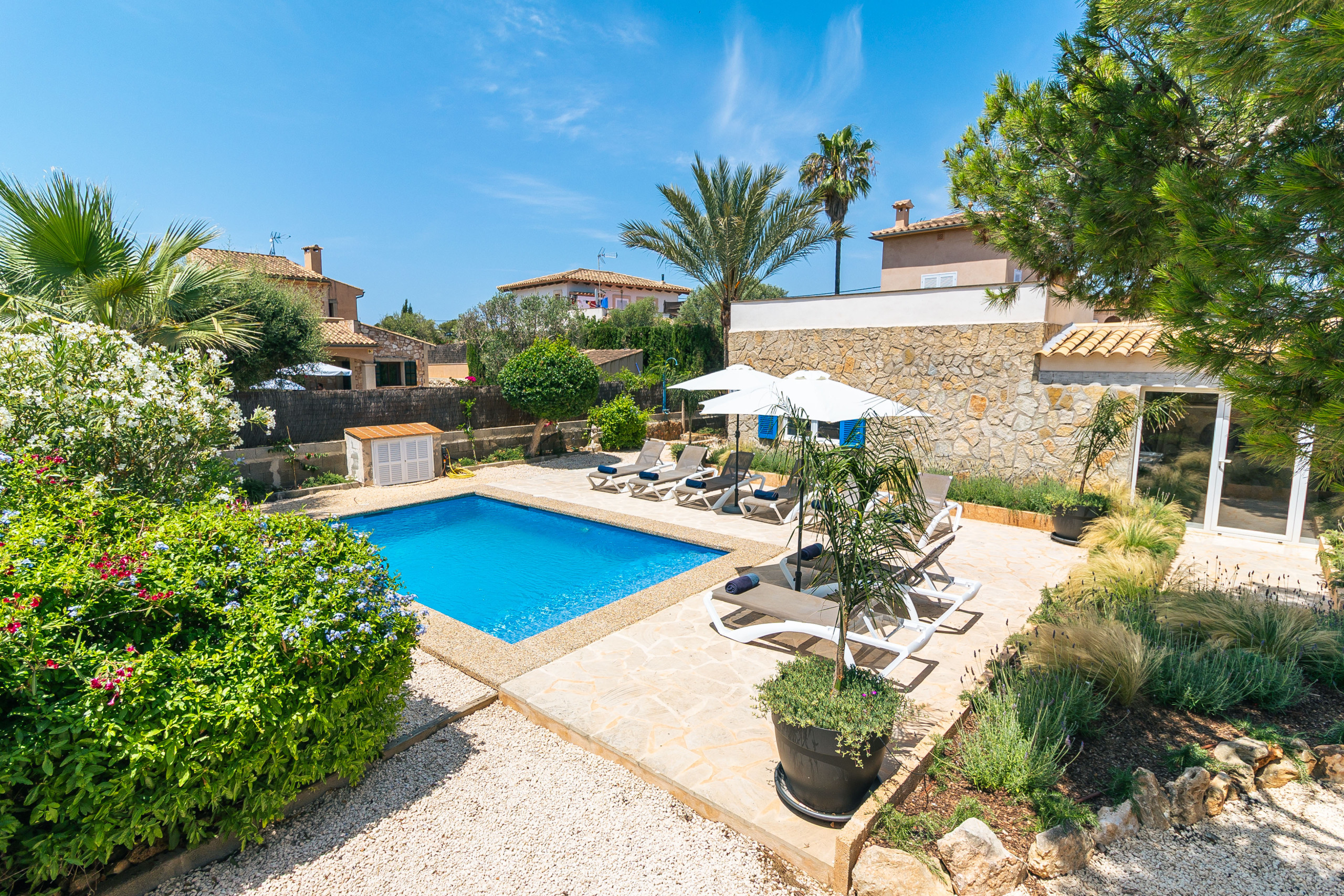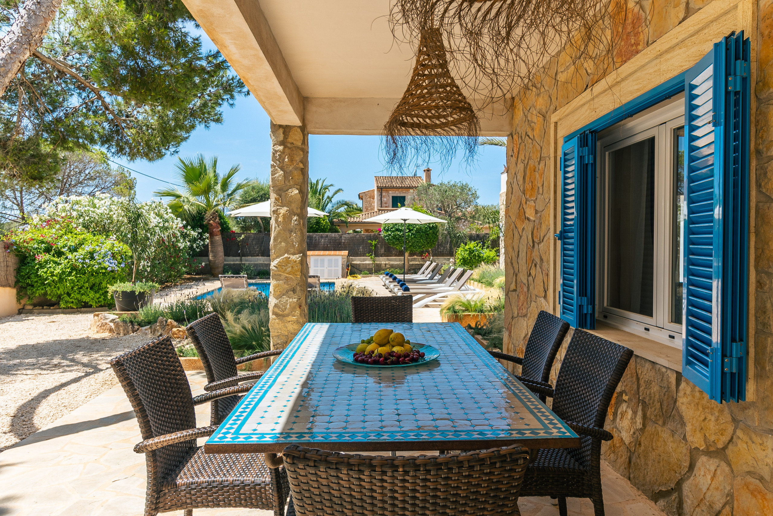 El exterior de la casa invita al relax con una piscina privada y una terraza amueblada. Una zona de barbacoa ofrece la posibilidad de disfrutar de cenas al aire libre en las cálidas noches de verano. El jardín está rodeado de vegetación típica mallorquina, creando un entorno perfecto para desconectar. La propiedad está completamente vallada y cuenta con tres plazas de aparcamiento.
