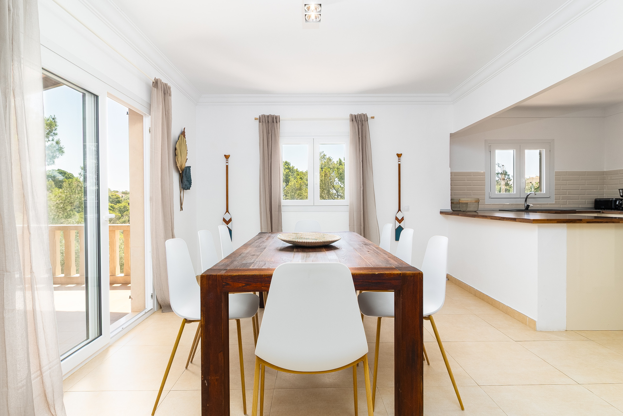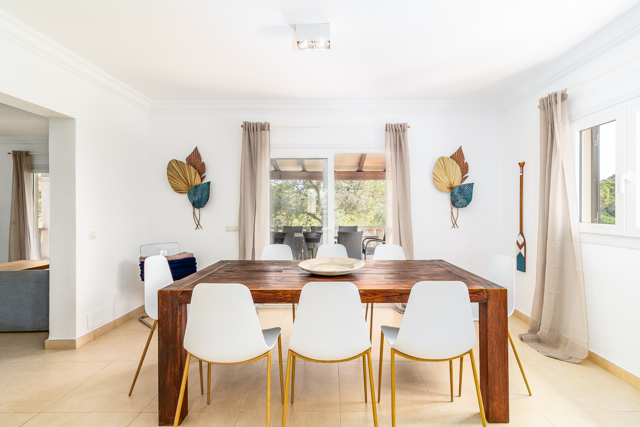 Bienvenido a la Villa Can Ferrando, su perfecto refugio en Cala Santanyi. Esta encantadora casa de vacaciones ofrece espacio para hasta 8 huéspedes en cuatro habitaciones elegantes, cada una con su propio baño y accesible a través del patio interior, un detalle especial que garantiza la máxima privacidad y es ideal para familias y amigos que viajan juntos y desean disfrutar de un espacio independiente.