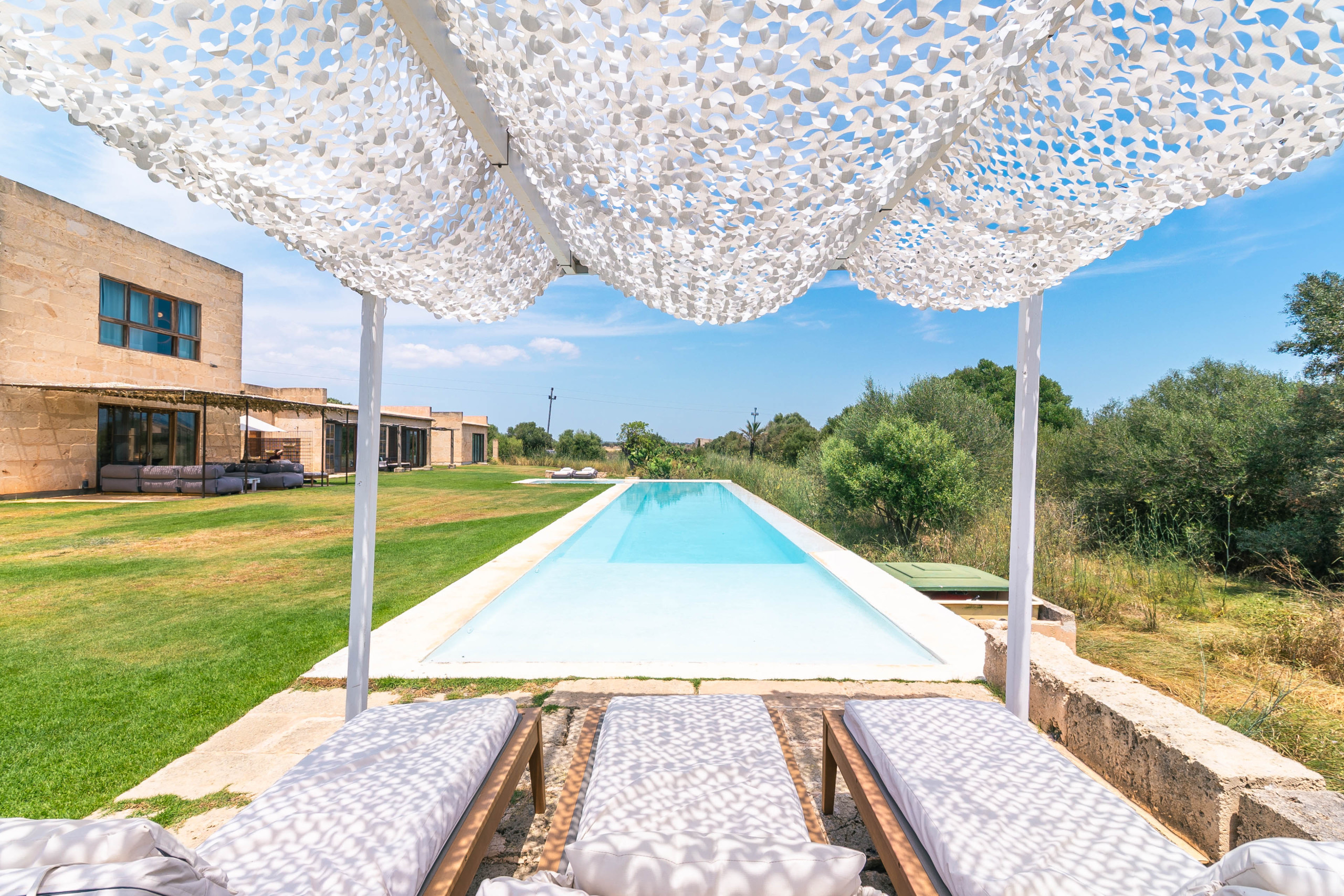 La finca se encuentra en una ubicación ideal entre Campos y Colònia de Sant Jordi. En pocos minutos podrá acceder a encantadores restaurantes de puerto, opciones de compras y las famosas salinas de la región. Algunas de las playas más hermosas de la isla, entre ellas Es Trenc, Cala Llombards, Cala Santanyí y S'Amarador, son de fácil acceso en coche. El pintoresco pueblo de Santanyí, con su popular mercado semanal, restaurantes y boutiques, se encuentra a solo unos 6 km de distancia.