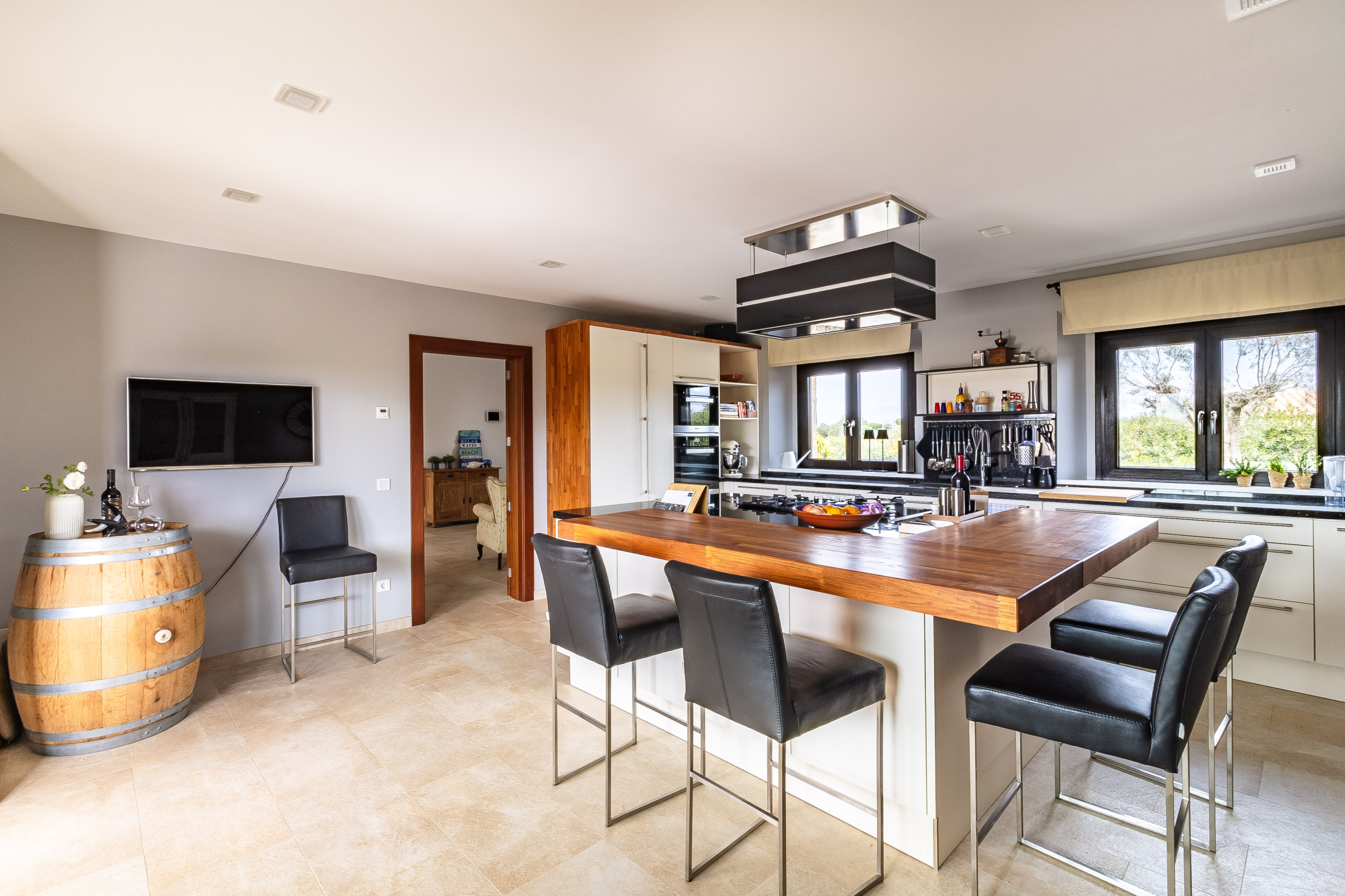 La finca dispone de aire acondicionado e infraestructura técnica moderna. Un sistema de control de iluminación integrado proporciona comodidad adicional y subraya el carácter contemporáneo de la propiedad.