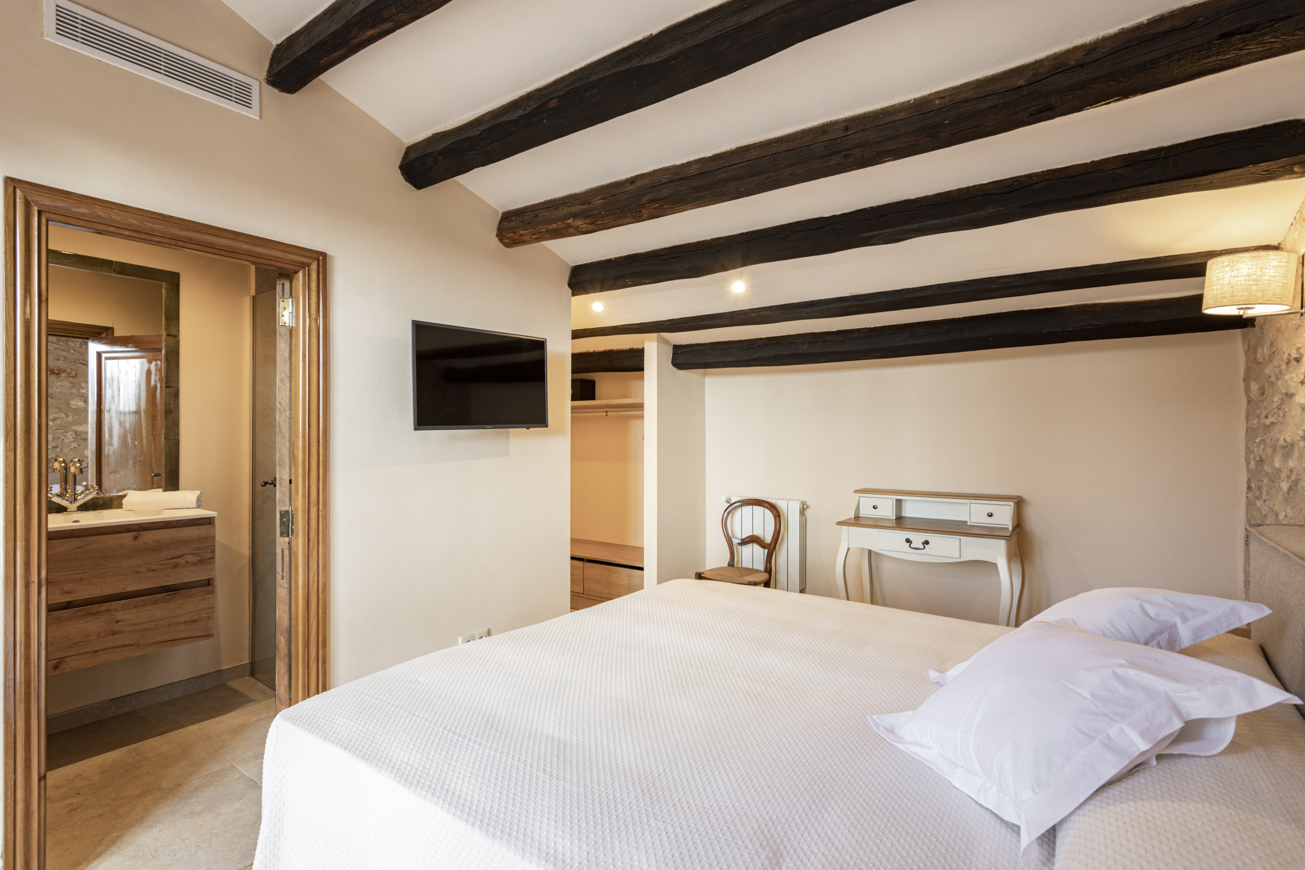 The property offers up to 11 elegant suites, each with its own bathroom with a spacious shower. The bedrooms are equipped with king-size beds, smart TV, safe, and individually adjustable air conditioning. Several suites also feature private furnished terraces or dressing areas. In total, the property can accommodate up to 24 guests.