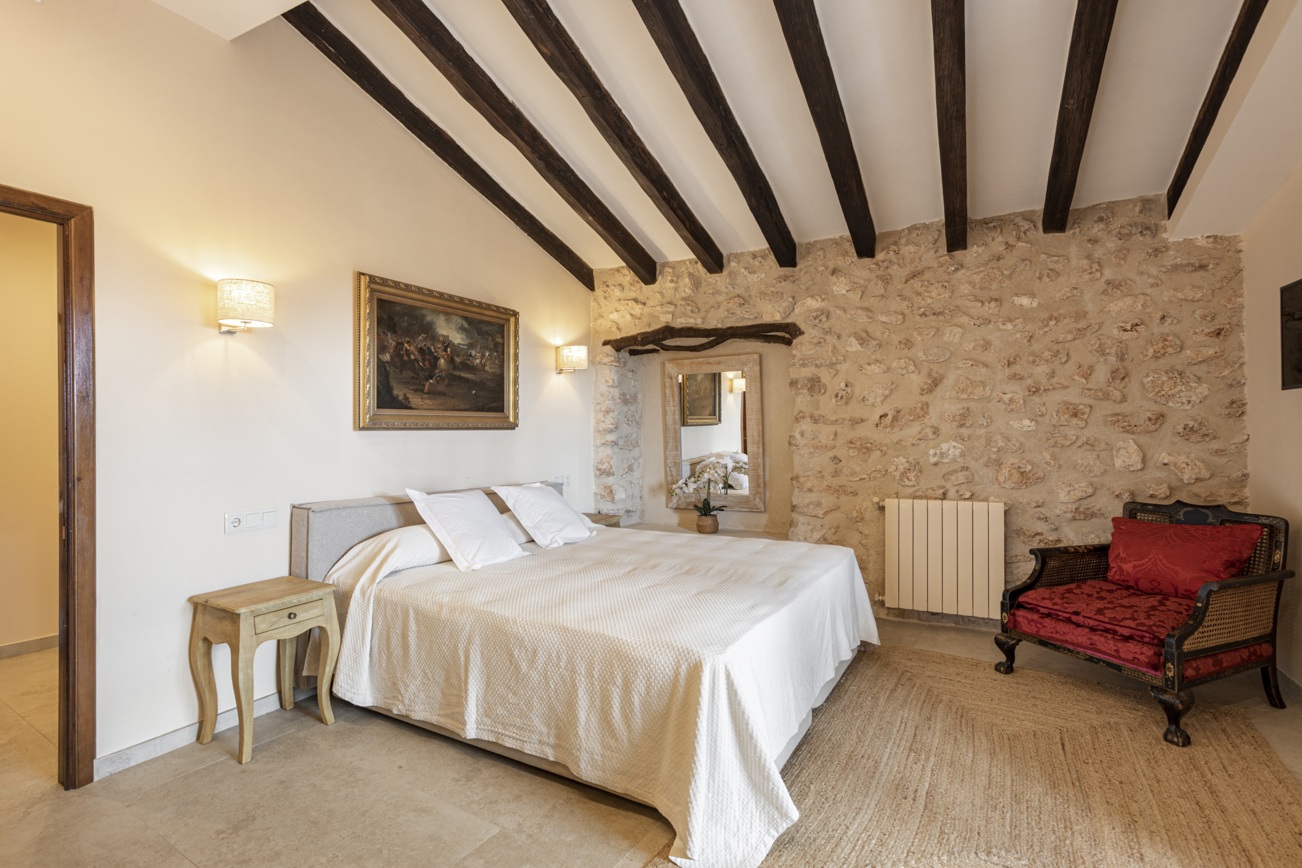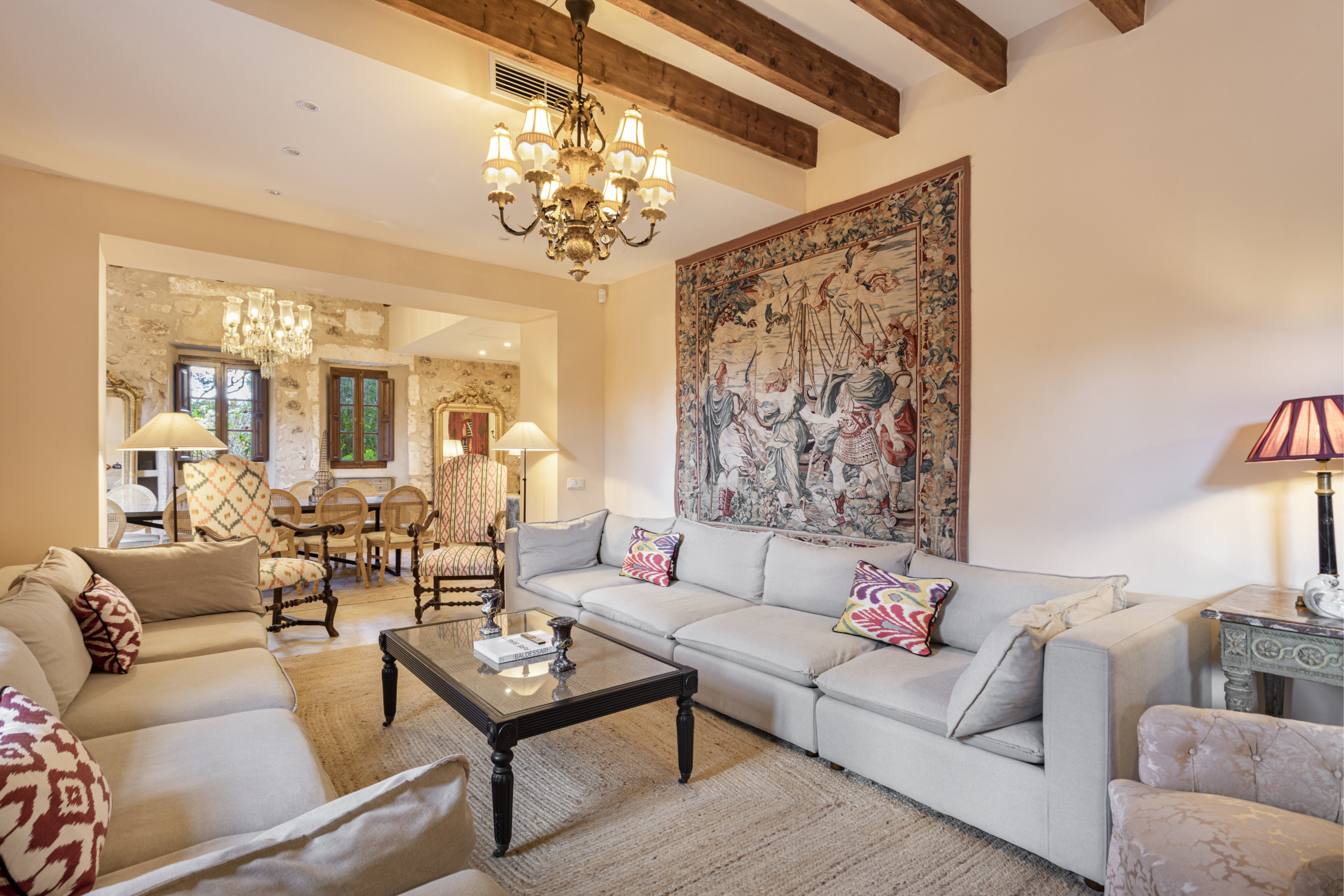 A private access road, lined with more than 200 cypress trees, leads to the impressive main house. Natural stone walls, wooden beam ceilings and high-quality materials give the finca its authentic character and at the same time create a warm and stylish atmosphere.