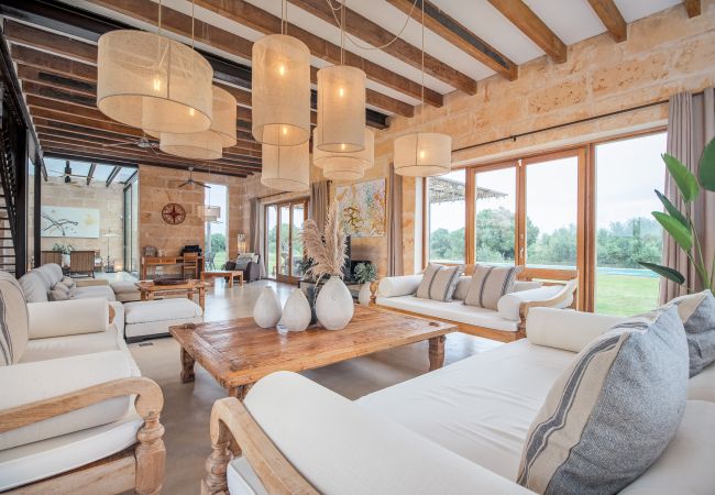 EQUIPMENT AND FEATURES OF THIS FINCA Type: Finca • Region: Southeast (Santanyí) • Living Area: 542 m² • Plot: 15,664 m² Rooms: 7+ • Bedrooms: 5 • Bathrooms: 4 • Guest House •...